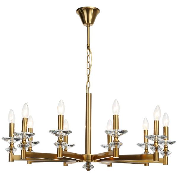 Допускается отличие страны-изготовителя, указанной в характеристиках. Линии производства могут находиться в нескольких государствах. Это не влияет на качество изготовления товара: все заводы данного бренда работают по общим стандартам, а готовые изделия проходят соответствующий контроль.Германия Коллекция Albert ЦветЦвет арматуры Бронза Цвет Золото Материал арматуры Металл Цвет плафона прозрачный Материал плафона Металл, Хрусталь РазмерыВысота (мм) 530-950 Длина (мм) 850 Диаметр (мм) 850 Высота минимальная (мм) 530 Ширина (мм) 850 ЭлектрикаКоличество ламп (шт) 10 Цоколь E14 Лампочки в комплекте нет Мощность лампы (Вт) 40 Напряжение (В) 220 Площадь освещения 24 Дополнительная информацияСпособ крепления планка с крюком Степень защиты (IP) IP20 Вес (Кг) 9,45 Диммирование Нет Тип подвеса На цепи -