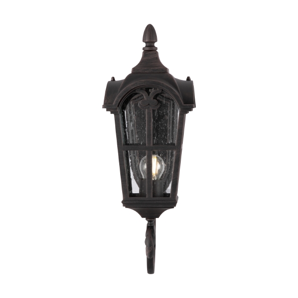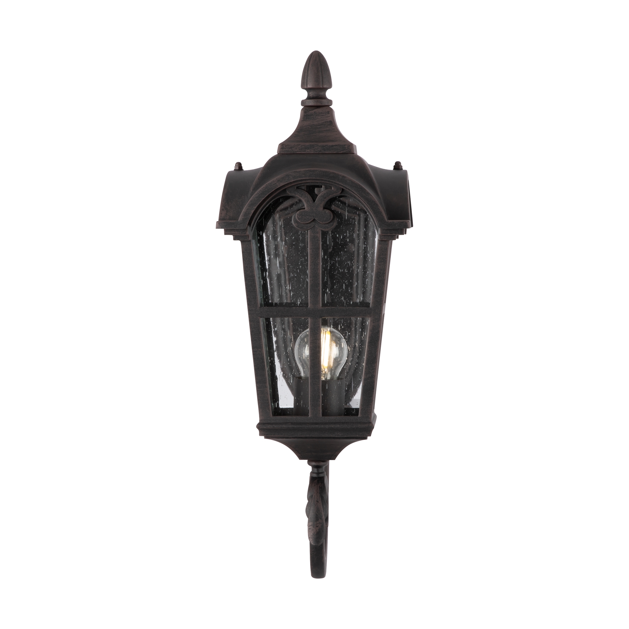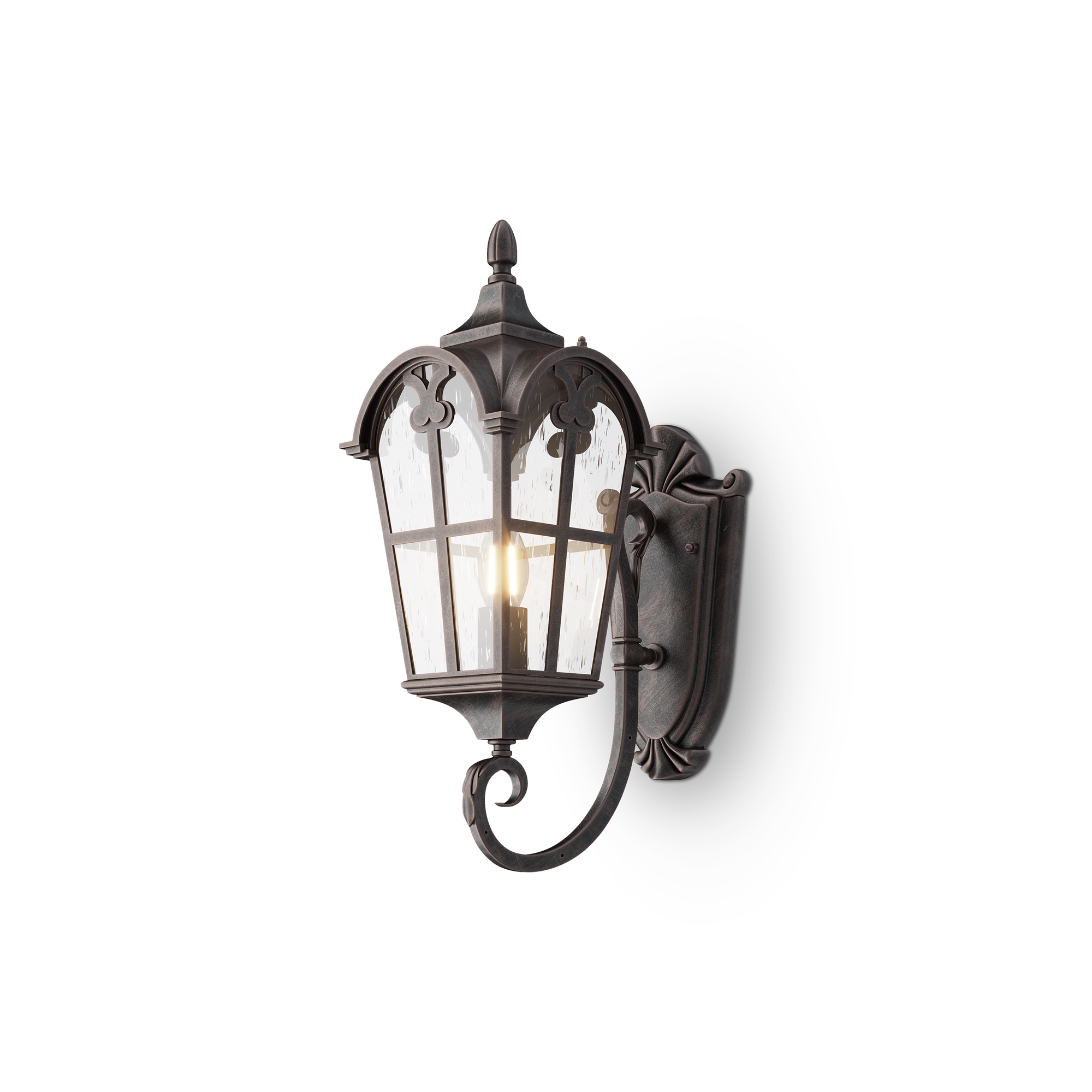 Широкий ассортимент серии включает настенные, подвесные и напольные светильники. Алюминиевый корпус моделей не подвержен коррозии и устойчив к перепадам температур. Волнистое стекло плафона обеспечивает красивые световые узоры. Модели представлены в двух цветах: античная бронза и черный с золотом. Источник света - лампы с цоколем Е27.