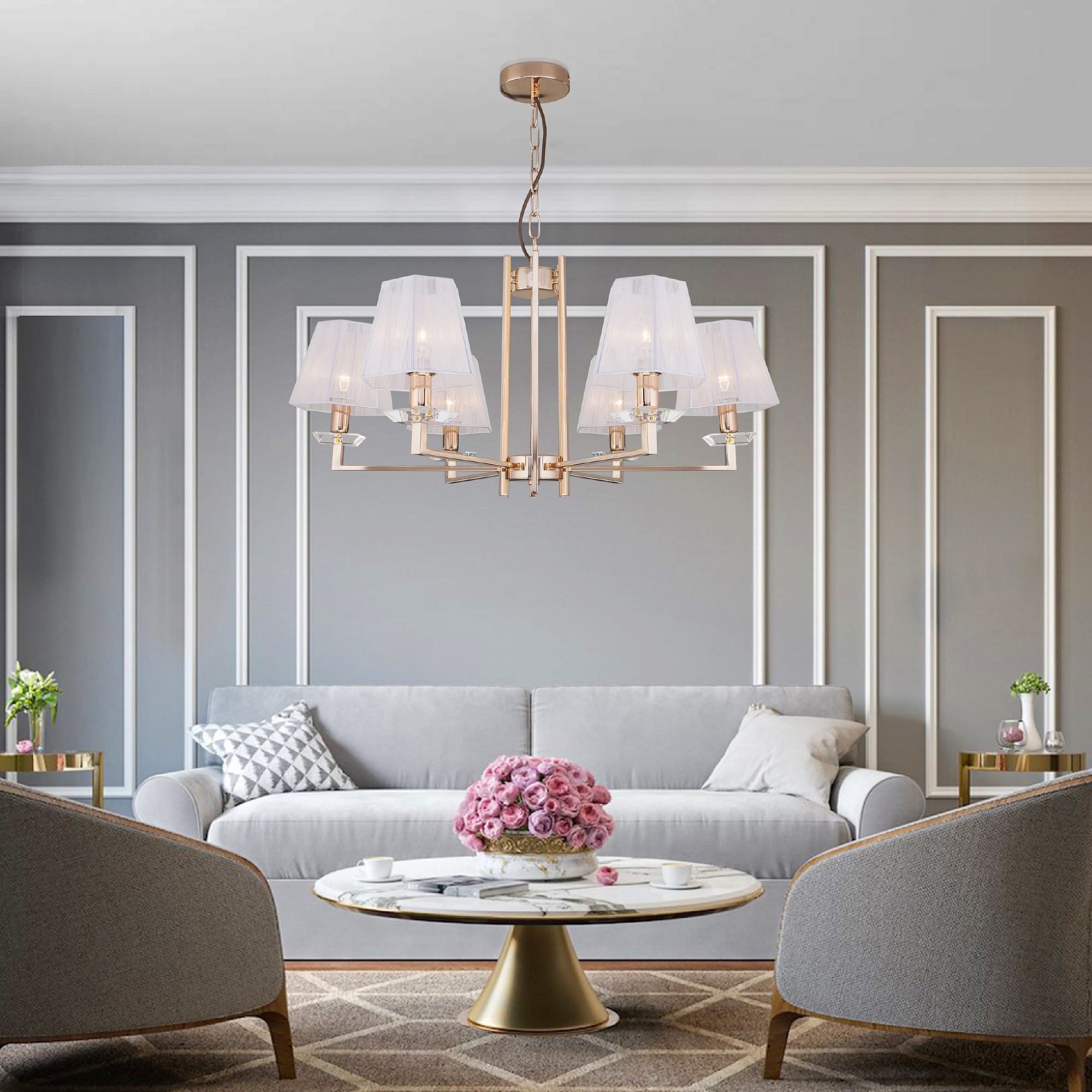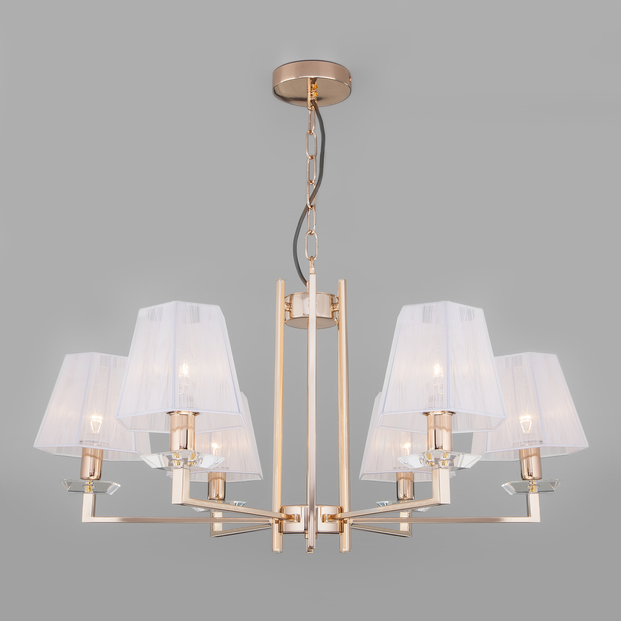 Допускается отличие страны-изготовителя, указанной в характеристиках. Линии производства могут находиться в нескольких государствах. Это не влияет на качество изготовления товара: все заводы данного бренда работают по общим стандартам, а готовые изделия проходят соответствующий контроль.Китай Коллекция Alegria ЦветЦвет арматуры Золото Цвет Золото Материал арматуры Металл Цвет декора прозрачный Цвет плафона Белый Материал декора Хрусталь Материал плафона Нить РазмерыВысота (мм) 880 Длина (мм) 800 Высота минимальная (мм) 380 Ширина (мм) 800 ЭлектрикаКоличество ламп (шт) 6 Цоколь E14 Мощность лампы (Вт) 40 Напряжение (В) 220 Площадь освещения 12 Дополнительная информацияСпособ крепления Планка Степень защиты (IP) IP20 Тип подвеса На цепи -
