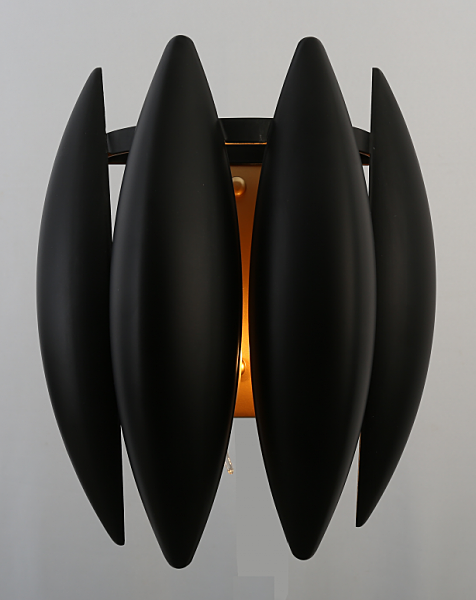 Металлическая арматура дизайнерской серии Aleit окрашена в благородные цвета перламутрового золота и акцентирована черными металлическими лепестками. Благодаря регулировке подвеса возможно применение светильника в интерьерах с различной высотой потолка.