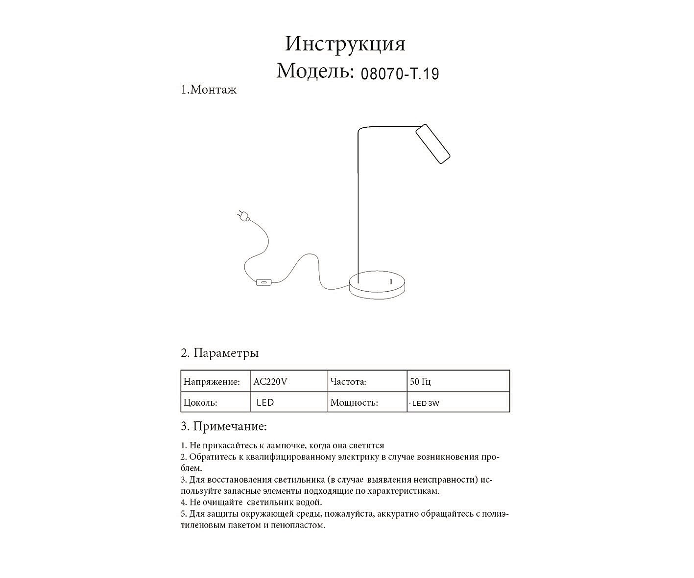 | Мощность лампы (Вт) | 3 |