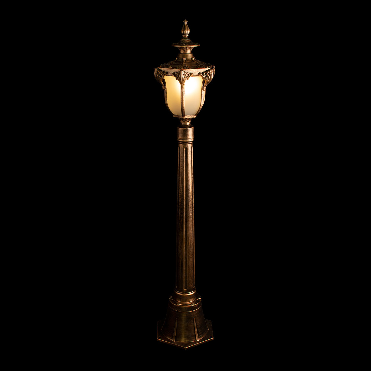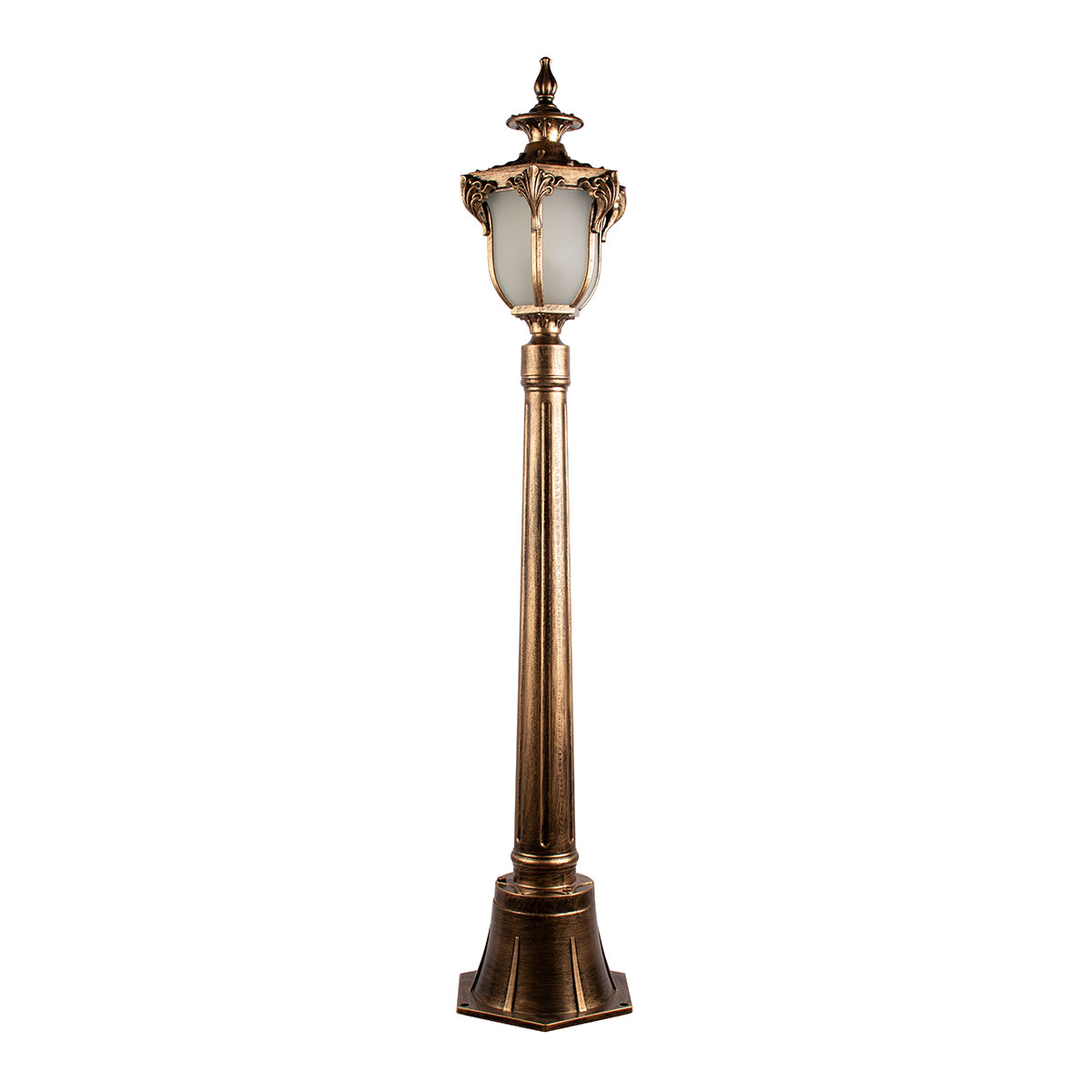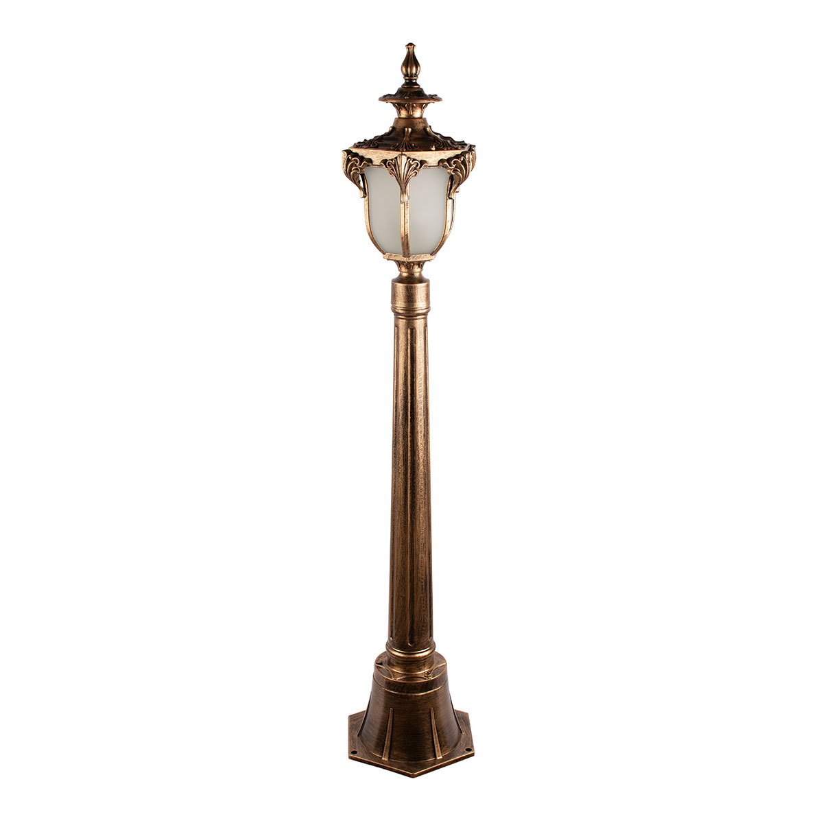 Допускается отличие страны-изготовителя, указанной в характеристиках. Линии производства могут находиться в нескольких государствах. Это не влияет на качество изготовления товара: все заводы данного бренда работают по общим стандартам, а готовые изделия проходят соответствующий контроль.Испания Коллекция Alessano ЦветЦвет арматуры Бронза Цвет Бронза Материал арматуры Металл Цвет плафона бронза Материал плафона Стекло РазмерыВысота (мм) 1100 Диаметр (мм) 240 Ширина (мм) 240 ЭлектрикаКоличество ламп (шт) 1 Цоколь E27 Мощность лампы (Вт) 100 Общая мощность (Вт) 100 Напряжение (В) 220 Дополнительная информацияСтепень защиты (IP) IP55 Место установки на пол Вес (Кг) 2 -