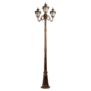 Допускается отличие страны-изготовителя, указанной в характеристиках. Линии производства могут находиться в нескольких государствах. Это не влияет на качество изготовления товара: все заводы данного бренда работают по общим стандартам, а готовые изделия проходят соответствующий контроль.Испания Коллекция Alessano ЦветЦвет арматуры Бронза Цвет Бронза Материал арматуры Металл Цвет плафона бронза Материал плафона Стекло РазмерыВысота (мм) 2400 Длина (мм) 680 Ширина (мм) 200 ЭлектрикаКоличество ламп (шт) 3 Цоколь E27 Мощность лампы (Вт) 100 Общая мощность (Вт) 300 Напряжение (В) 220 Дополнительная информацияСтепень защиты (IP) IP55 Место установки на пол Вес (Кг) 7.5 -