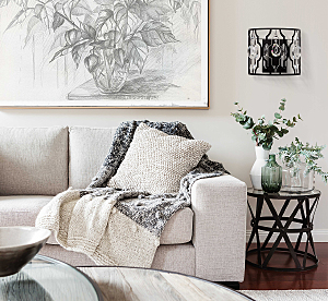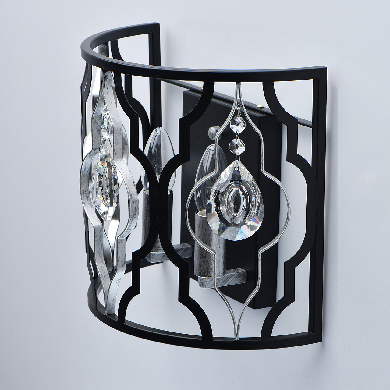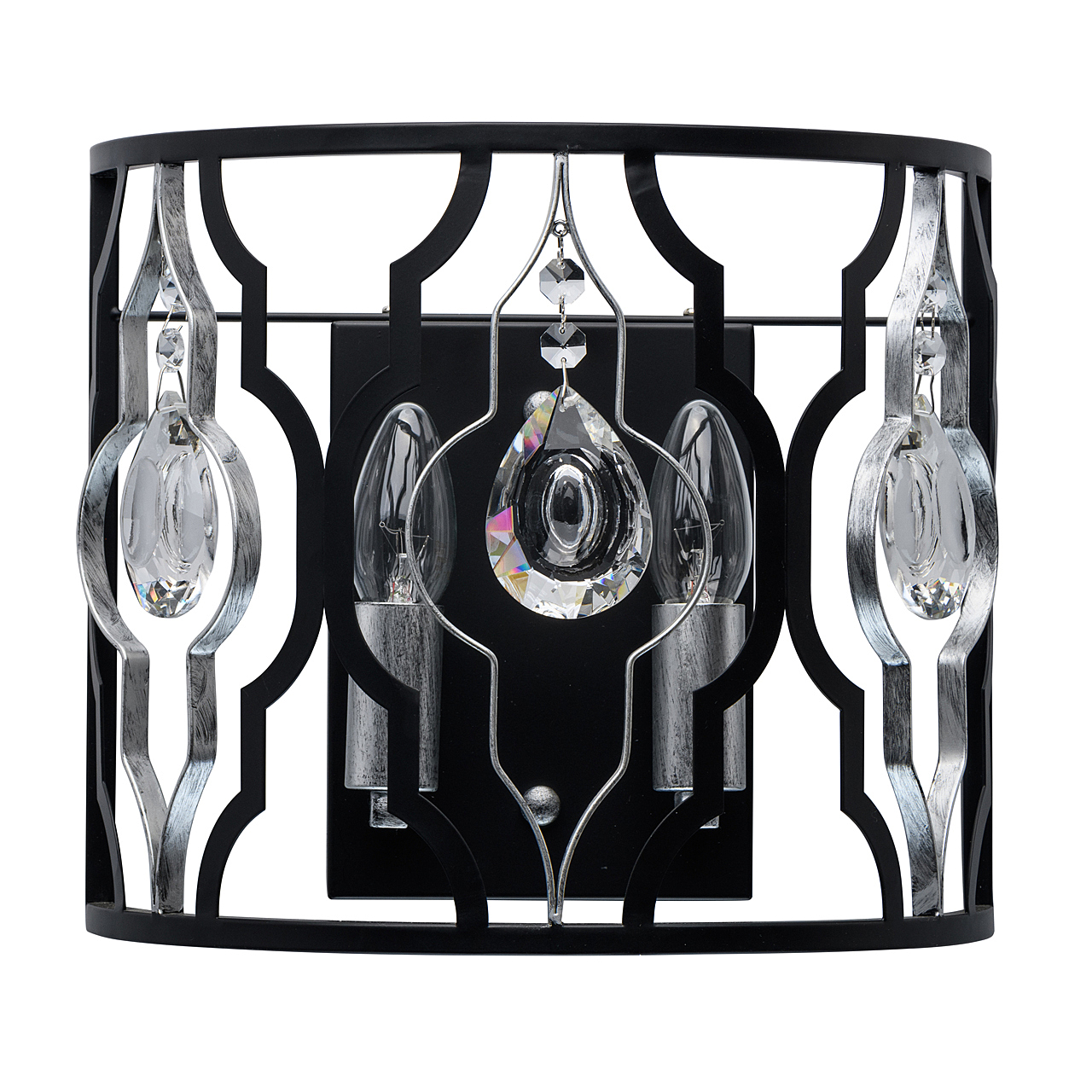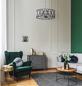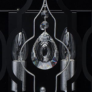 Оригинальность стиля ар-деко в комбинации брутального ажурного плафона и элегантного декора.Сложная огранка хрусталя добавляет ценности светильнику.Трендовое сочетание цветов серебряного и черного металла.Полная семья решает задачи общего и зонального освещения.