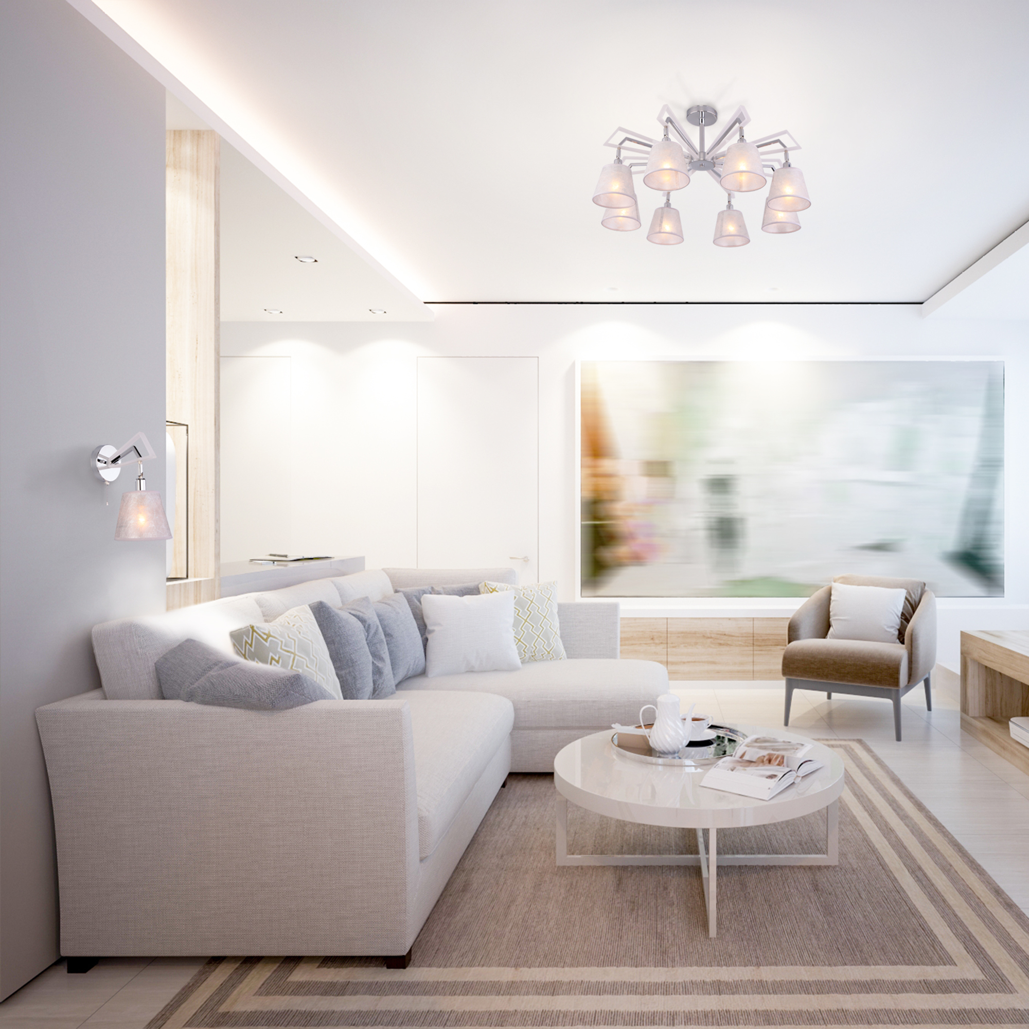 Допускается отличие страны-изготовителя, указанной в характеристиках. Линии производства могут находиться в нескольких государствах. Это не влияет на качество изготовления товара: все заводы данного бренда работают по общим стандартам, а готовые изделия проходят соответствующий контроль.Китай Коллекция Alicante ЦветЦвет арматуры Хром Цвет Хром Материал арматуры Металл Цвет плафона Серый Материал декора Акрил Материал плафона Ткань РазмерыВысота (мм) 410 Длина (мм) 800 Ширина (мм) 800 ЭлектрикаКоличество ламп (шт) 8 Цоколь E14 Мощность лампы (Вт) 40 Напряжение (В) 220 Площадь освещения 21 Дополнительная информацияСпособ крепления Планка Степень защиты (IP) IP20 -