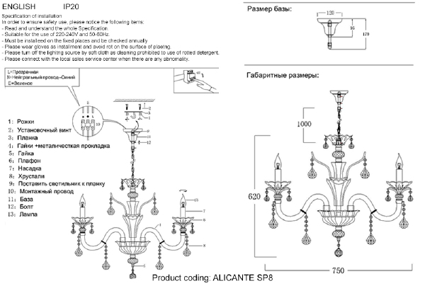 Производитель Crystal Lux Артикул ALICANTE SP8 Страна