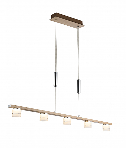 Допускается отличие страны-изготовителя, указанной в характеристиках. Линии производства могут находиться в нескольких государствах. Это не влияет на качество изготовления товара: все заводы данного бренда работают по общим стандартам, а готовые изделия проходят соответствующий контроль.Австрия Коллекция Alonis ЦветЦвет арматуры Хром, Дерево Цвет Дерево Материал арматуры Металл, Акрил РазмерыВысота (мм) 1200 Длина (мм) 900 Высота минимальная (мм) 800 Ширина (мм) 80 ЭлектрикаКоличество ламп (шт) 5 Цоколь LED Лампочки в комплекте Лампы в комплекте Мощность лампы (Вт) 25 Световой поток 380 Цветовая температура теплый (3000k) Дополнительная информацияСтепень защиты (IP) IP20 Тип подвеса На тросах Количество подвесов Одиночный подвес -