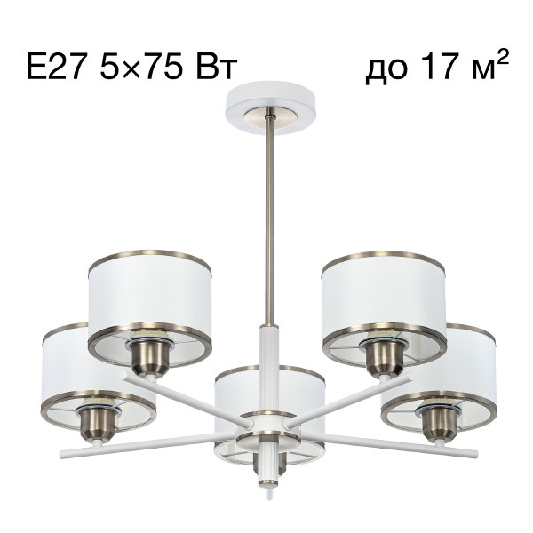 Допускается отличие страны-изготовителя, указанной в характеристиках. Линии производства могут находиться в нескольких государствах. Это не влияет на качество изготовления товара: все заводы данного бренда работают по общим стандартам, а готовые изделия проходят соответствующий контроль.Дания Коллекция Alton ЦветЦвет арматуры Белый, хром матовый Цвет Белый Материал арматуры Металл Цвет плафона Белый, хром матовый Материал плафона Текстиль РазмерыВысота (мм) 535 Диаметр (мм) 600 Ширина (мм) 600 ЭлектрикаКоличество ламп (шт) 5 Цоколь E27 Тип лампы Накаливания, Светодиодные Мощность лампы (Вт) 375 Общая мощность (Вт) 375 Световой поток 4100 Дополнительная информацияСпособ крепления Планка Степень защиты (IP) IP20 -