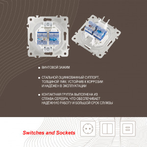 | Техническая особенность | Встраиваемые, Интернет-розетки, Телефонная |