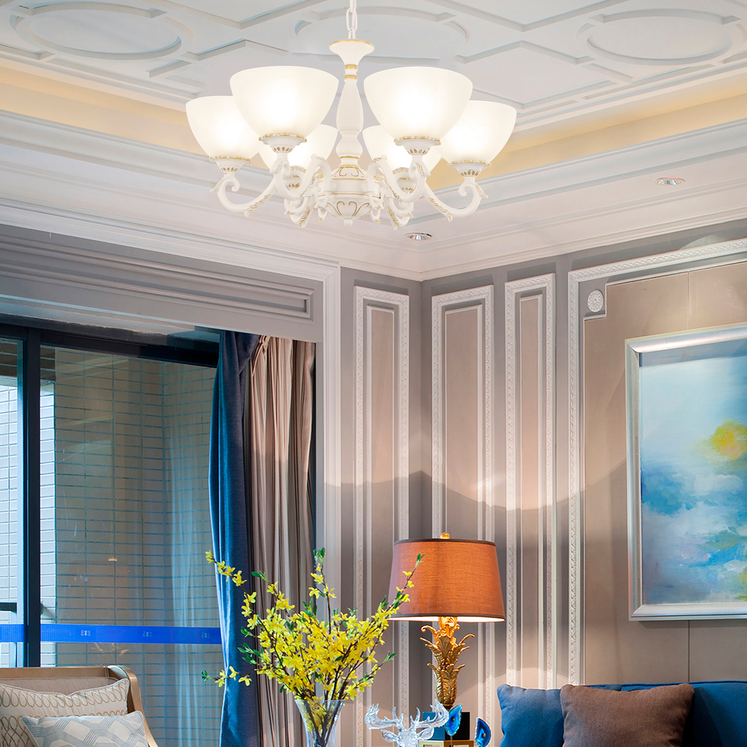 Допускается отличие страны-изготовителя, указанной в характеристиках. Линии производства могут находиться в нескольких государствах. Это не влияет на качество изготовления товара: все заводы данного бренда работают по общим стандартам, а готовые изделия проходят соответствующий контроль.Италия Коллекция Am340518 ЦветЦвет арматуры Золото, Белый Цвет Белый Материал арматуры Металл Цвет плафона Белый Материал плафона Стекло РазмерыВысота (мм) 320 Длина (мм) 320 Диаметр (мм) 600 ЭлектрикаКоличество ламп (шт) 6 Цоколь E27 Мощность лампы (Вт) 40 Дополнительная информацияСпособ крепления Крюк Степень защиты (IP) IP20 Тип подвеса На цепи -