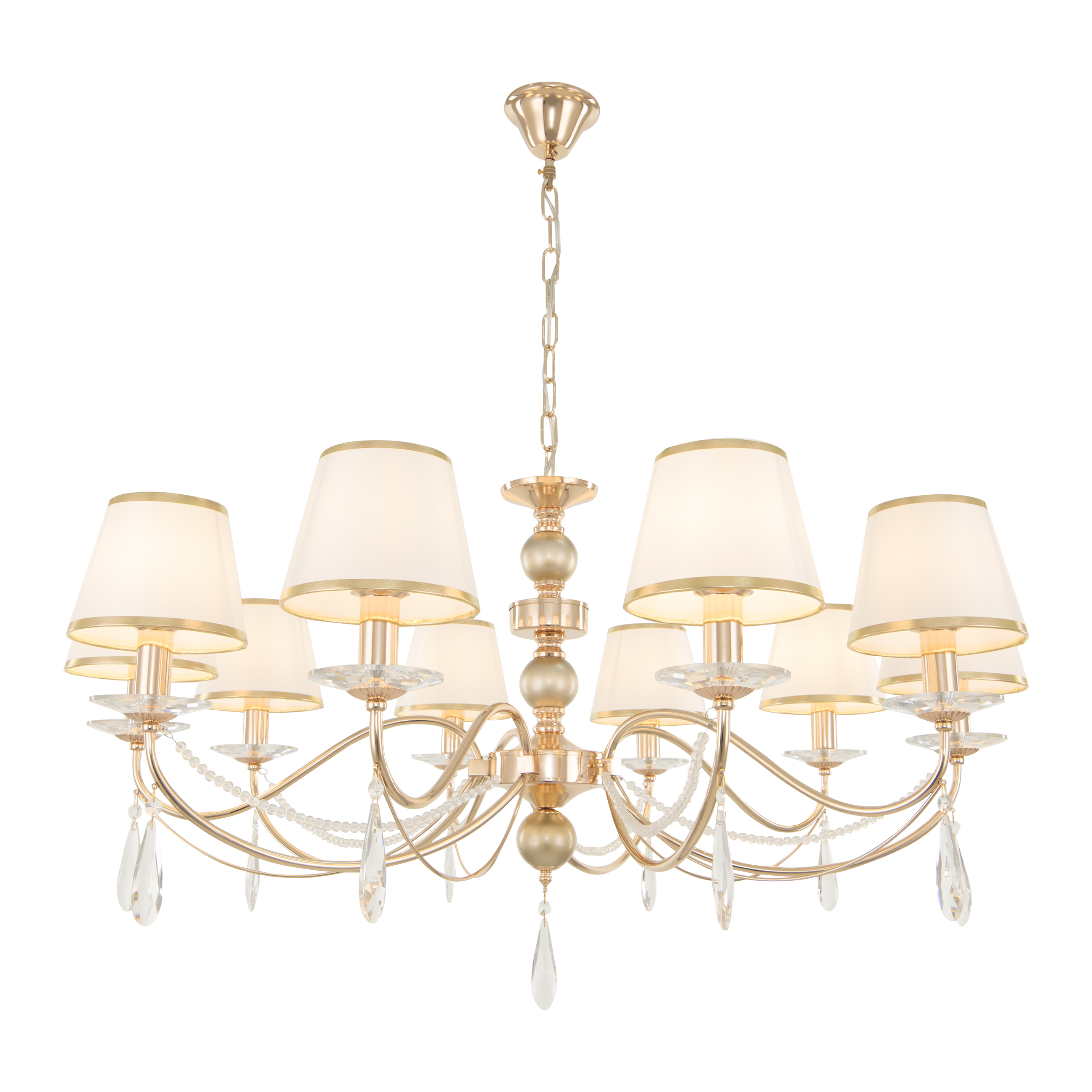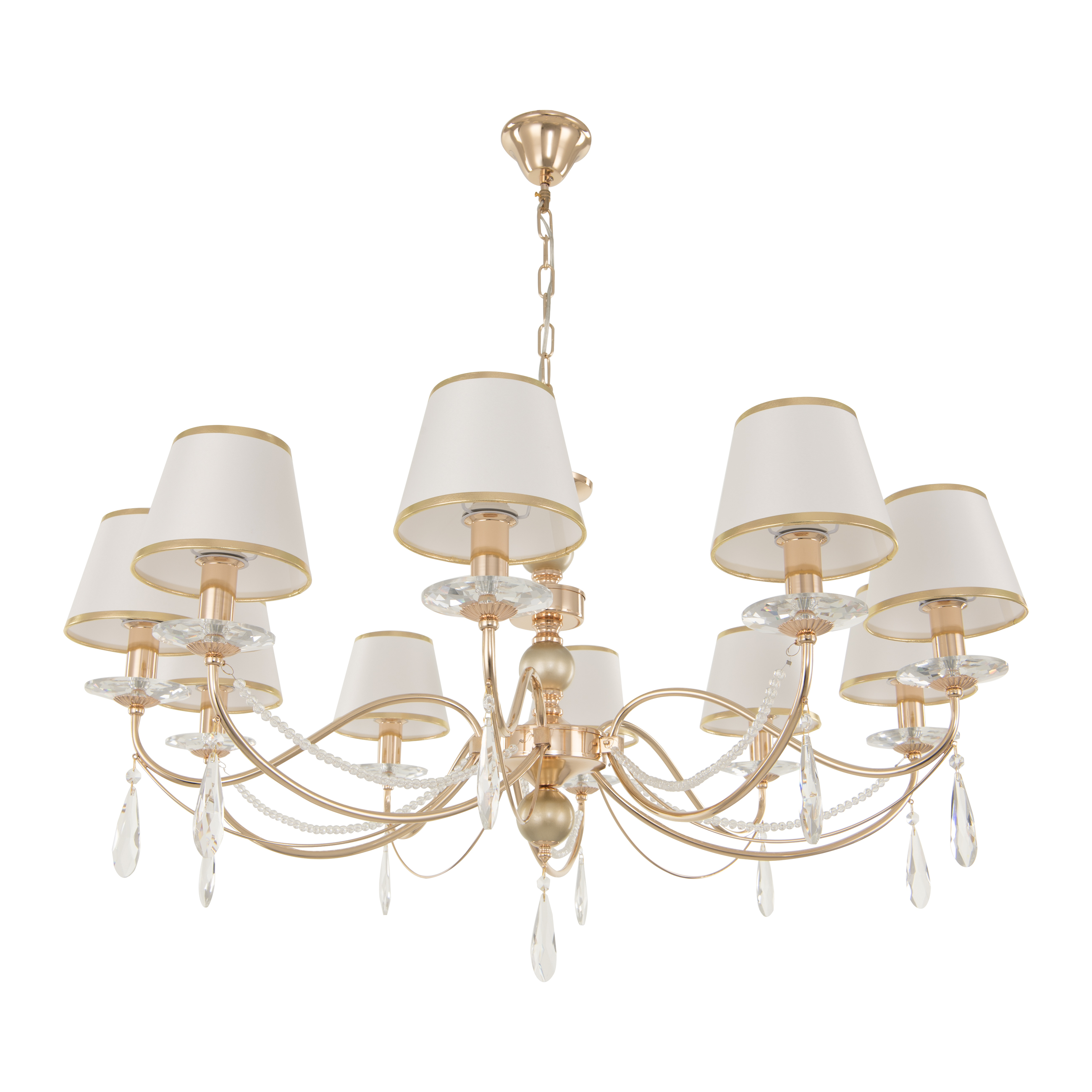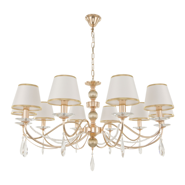 Допускается отличие страны-изготовителя, указанной в характеристиках. Линии производства могут находиться в нескольких государствах. Это не влияет на качество изготовления товара: все заводы данного бренда работают по общим стандартам, а готовые изделия проходят соответствующий контроль.Италия Коллекция Am342109 ЦветЦвет арматуры Золото Цвет Золото Материал арматуры Металл Цвет плафона Белый, золото Материал плафона Ткань РазмерыВысота (мм) 520 Длина (мм) 520 Диаметр (мм) 960 ЭлектрикаКоличество ламп (шт) 10 Цоколь E14 Мощность лампы (Вт) 40 Дополнительная информацияСпособ крепления Крюк Степень защиты (IP) IP20 Тип подвеса На цепи -