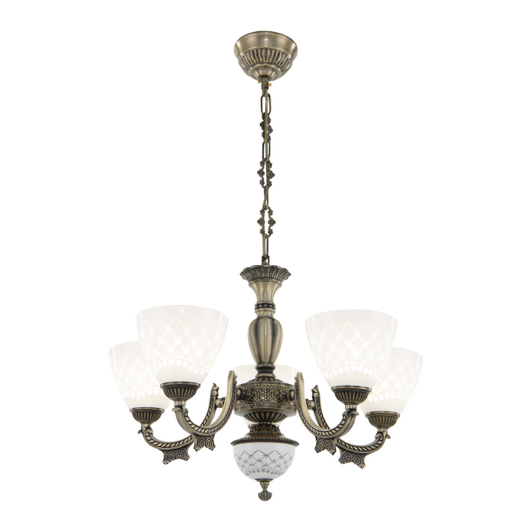 Допускается отличие страны-изготовителя, указанной в характеристиках. Линии производства могут находиться в нескольких государствах. Это не влияет на качество изготовления товара: все заводы данного бренда работают по общим стандартам, а готовые изделия проходят соответствующий контроль.Италия Коллекция Am343837 ЦветЦвет арматуры патина Цвет Патина Материал арматуры Металл Цвет плафона Белый Материал плафона Стекло РазмерыВысота (мм) 380 Длина (мм) 380 Диаметр (мм) 550 ЭлектрикаКоличество ламп (шт) 5 Цоколь E27 Мощность лампы (Вт) 40 Дополнительная информацияСпособ крепления Монтажная пластина Степень защиты (IP) IP20 Тип подвеса На цепи -