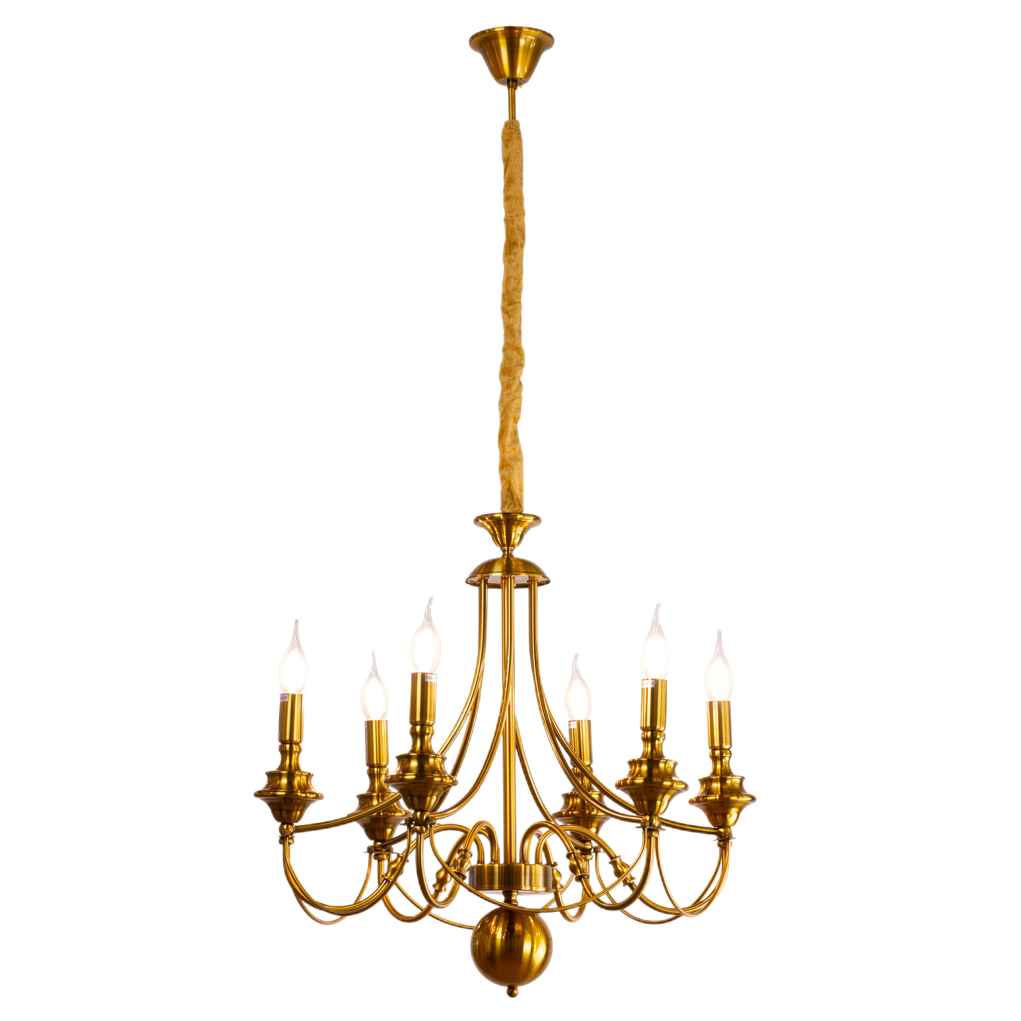 Допускается отличие страны-изготовителя, указанной в характеристиках. Линии производства могут находиться в нескольких государствах. Это не влияет на качество изготовления товара: все заводы данного бренда работают по общим стандартам, а готовые изделия проходят соответствующий контроль.Испания Коллекция Am375 ЦветЦвет арматуры Латунь Цвет Латунь РазмерыВысота (мм) 1200 Диаметр (мм) 600 Высота минимальная (мм) 600 ЭлектрикаКоличество ламп (шт) 6 Цоколь E14 Тип лампы Светодиодная, Накаливания, Энергосберегающая (КЛЛ) Лампочки в комплекте нет Мощность лампы (Вт) 40 Общая мощность (Вт) 240 Напряжение (В) 220 Площадь освещения 12 Дополнительная информацияСпособ крепления Крюк Степень защиты (IP) IP20 Место установки на потолок Диммирование возможно (при использовании диммируемых ламп) Тип подвеса На цепи -