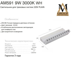 | Артикул | AM591 9W 3000K WH |