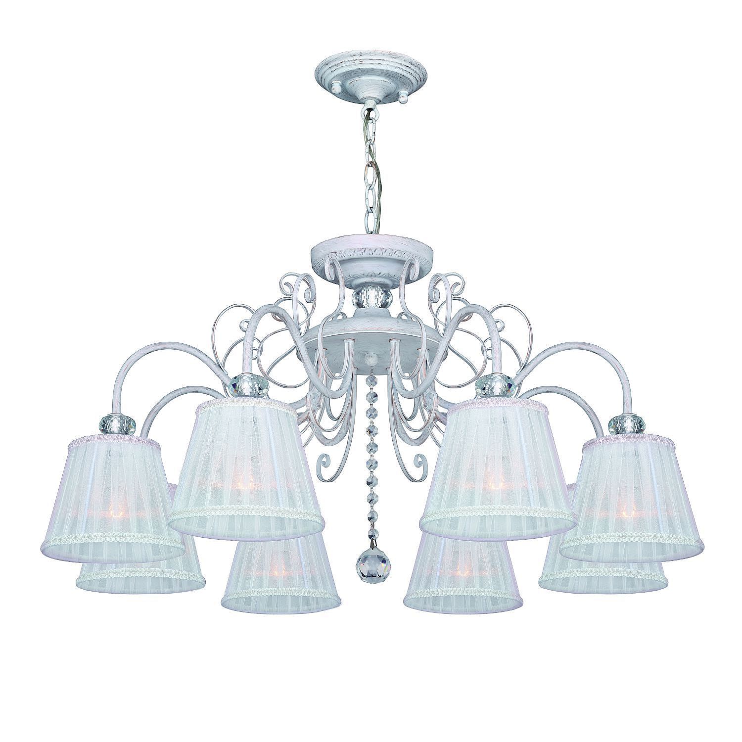 Допускается отличие страны-изготовителя, указанной в характеристиках. Линии производства могут находиться в нескольких государствах. Это не влияет на качество изготовления товара: все заводы данного бренда работают по общим стандартам, а готовые изделия проходят соответствующий контроль.Германия Коллекция Amanda ЦветЦвет арматуры Белый, золотая патина Цвет Белый Материал арматуры Металл Цвет плафона Белый Материал декора Хрусталь Материал плафона Органза РазмерыВысота (мм) 1110 Диаметр (мм) 800 Высота минимальная (мм) 410 Ширина (мм) 800 ЭлектрикаКоличество ламп (шт) 8 Цоколь E14 Мощность лампы (Вт) 40 Напряжение (В) 220 Дополнительная информацияСпособ крепления Планка Вес (Кг) 4,5 Тип подвеса На цепи -