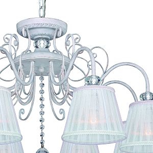 Люстры с системой 2в1 - убрав цепь люстру можно использовать как потолочный светильник, адаптируя к любой высоте полотков. Каркас белого цвета с золотой патиной, абажур из белой органзы, хрусталь высшего качества