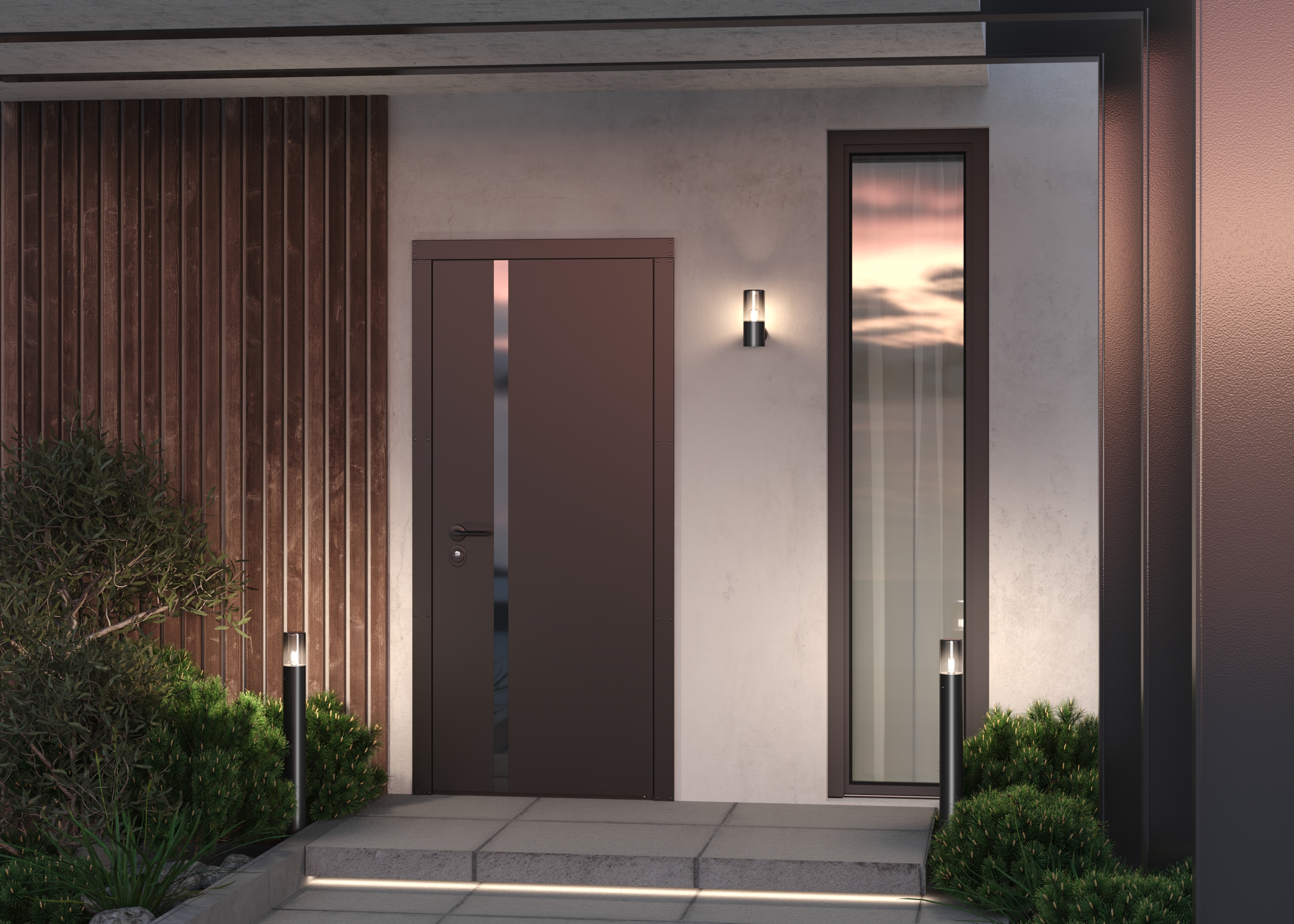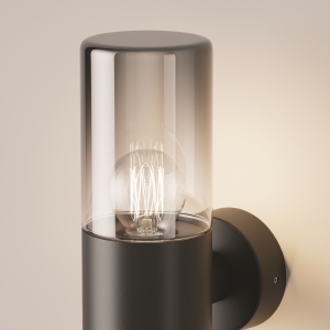 Алюминиевый корпус, цвет - графит. Световой элемент - тонированное стекло. Источник света - лампа с цоколем Е27. Универсальная серия для современных и классических экстерьеров. Защита IP54.