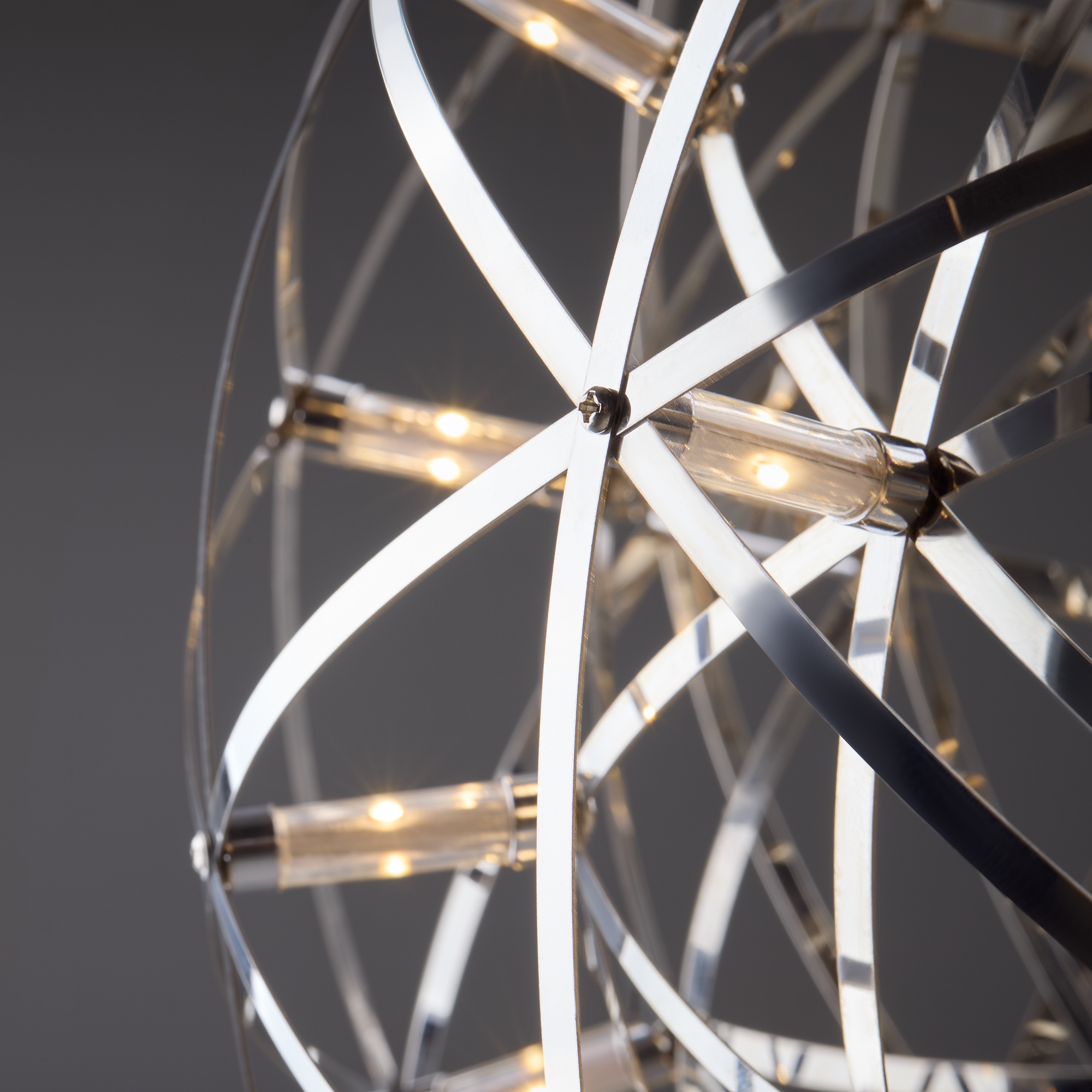 Допускается отличие страны-изготовителя, указанной в характеристиках. Линии производства могут находиться в нескольких государствах. Это не влияет на качество изготовления товара: все заводы данного бренда работают по общим стандартам, а готовые изделия проходят соответствующий контроль.Германия Коллекция Amber ЦветЦвет арматуры Хром Цвет Хром Материал арматуры Металл Материал плафона Металл РазмерыВысота (мм) 1300 Диаметр (мм) 400 Высота минимальная (мм) 400 Ширина (мм) 400 ЭлектрикаКоличество ламп (шт) 1 Цоколь LED Лампочки в комплекте Нет в комплекте Мощность лампы (Вт) 26 Напряжение (В) 220 Световой поток 1600 Цветовая температура 3000 Дополнительная информацияСпособ крепления Планка Степень защиты (IP) IP20 Вес (Кг) 1,31 Тип подвеса На тросах -