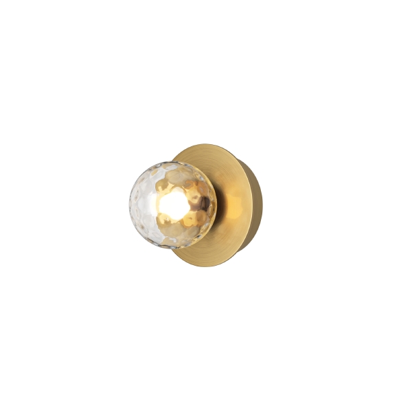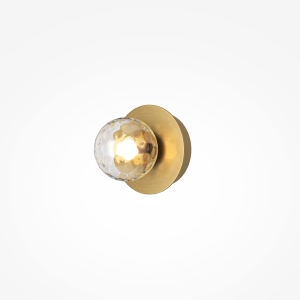 Металлическая арматура цвета латуни с сатинированным эффектом. Яркие небольшие плафоны диаметром 80 мм цвета янтаря. Встроенный LED источник света дает мощный световой поток с цветовой температурой 3000К и углом рассеивания 120 градусов. Подвесные светильники выполнены в виде перевернутой арки и в трендовой форме круга, расположение плафонов настенного светильника напоминает созвездие.
