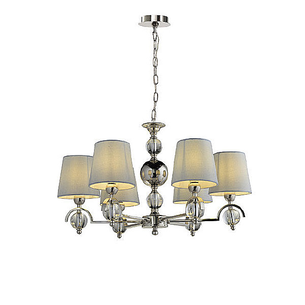 Допускается отличие страны-изготовителя, указанной в характеристиках. Линии производства могут находиться в нескольких государствах. Это не влияет на качество изготовления товара: все заводы данного бренда работают по общим стандартам, а готовые изделия проходят соответствующий контроль.Испания Коллекция Amelia ЦветЦвет арматуры Никель Цвет Никель Материал арматуры Металл Цвет декора прозрачный Материал декора Хрусталь ASTREA Материал плафона Ткань РазмерыВысота (мм) 1330 Длина (мм) 680 Диаметр (мм) 680 Высота минимальная (мм) 380 Ширина (мм) 680 ЭлектрикаКоличество ламп (шт) 6 Цоколь E14 Тип лампы Светодиодная, Накаливания, Энергосберегающая (КЛЛ) Лампочки в комплекте Нет в комплекте Мощность лампы (Вт) 40 Площадь освещения 18 Дополнительная информацияСтепень защиты (IP) IP20 Вес (Кг) 5,5 Тип подвеса На цепи -