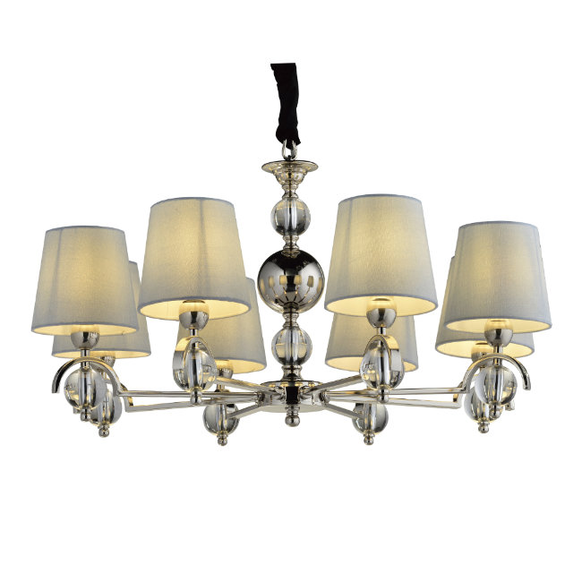 Допускается отличие страны-изготовителя, указанной в характеристиках. Линии производства могут находиться в нескольких государствах. Это не влияет на качество изготовления товара: все заводы данного бренда работают по общим стандартам, а готовые изделия проходят соответствующий контроль.Испания Коллекция Амелия ЦветЦвет арматуры Хром Цвет Хром Материал арматуры Металл Цвет плафона Белый Материал плафона Ткань РазмерыВысота (мм) 380 Диаметр (мм) 770 Ширина (мм) 770 ЭлектрикаКоличество ламп (шт) 8 Цоколь E14 Тип лампы Светодиодная, Накаливания, Энергосберегающая (КЛЛ) Мощность лампы (Вт) 60 Напряжение (В) 220 Дополнительная информацияСтепень защиты (IP) IP20 Вес (Кг) 7,2 Тип подвеса На цепи -