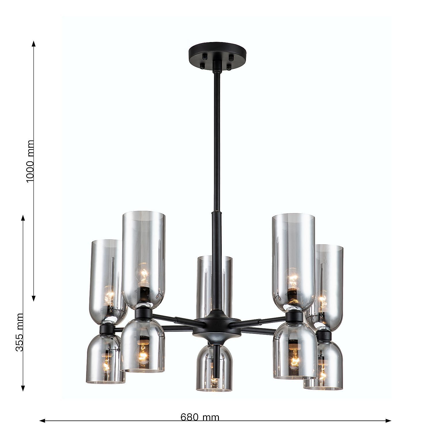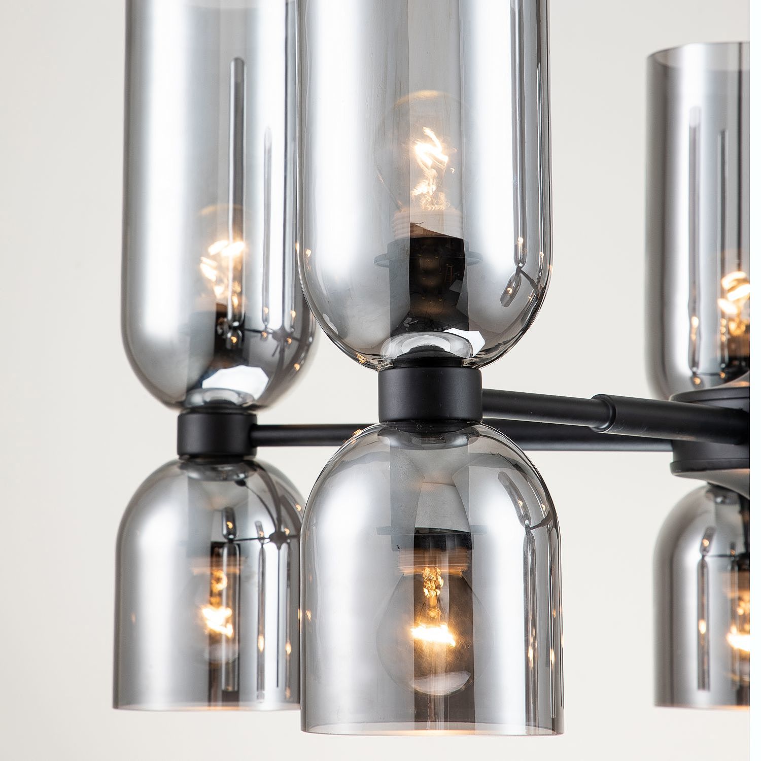 Каркас черного цвета, плафоны из стекла дымчато-серого цвета