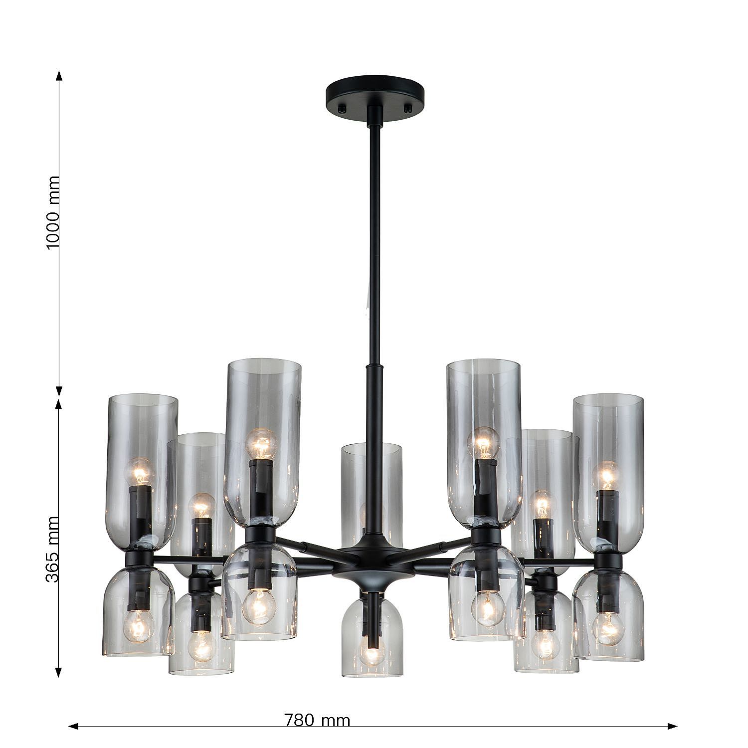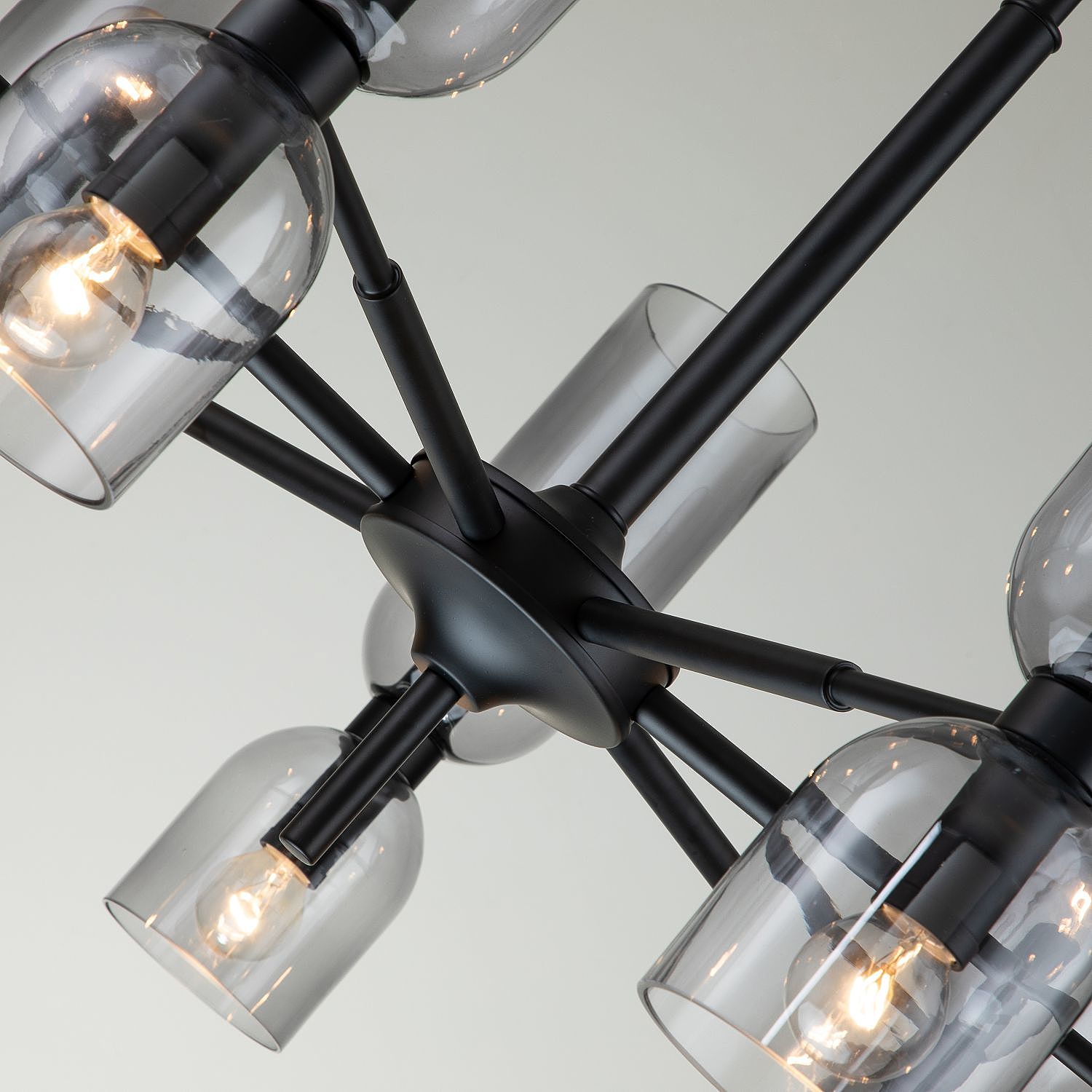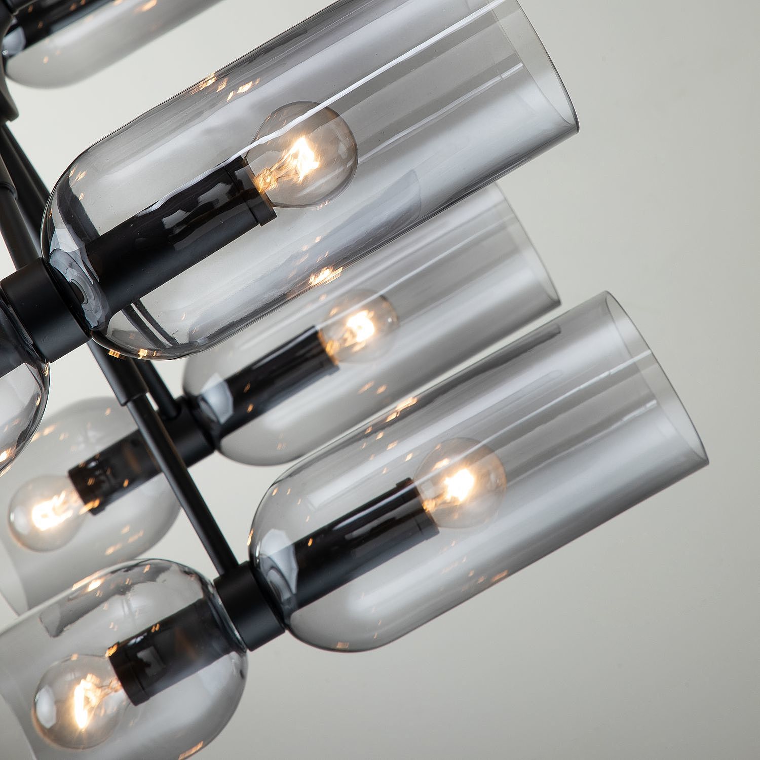 Каркас черного цвета, плафоны из стекла дымчато-серого цвета