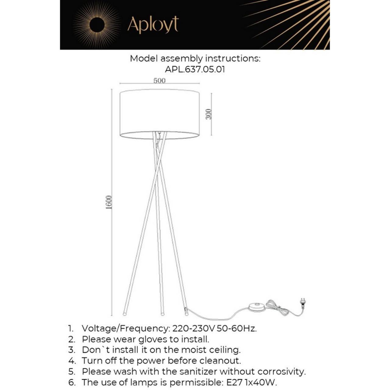 Допускается отличие страны-изготовителя, указанной в характеристиках. Линии производства могут находиться в нескольких государствах. Это не влияет на качество изготовления товара: все заводы данного бренда работают по общим стандартам, а готовые изделия проходят соответствующий контроль.Польша Коллекция Anastasi ЦветЦвет арматуры Бронза Цвет Бронза Материал арматуры Металл Цвет плафона Белый Материал плафона Ткань РазмерыВысота (мм) 1600 Диаметр (мм) 500 Ширина (мм) 500 ЭлектрикаКоличество ламп (шт) 1 Цоколь E27 Лампочки в комплекте Нет в комплекте Мощность лампы (Вт) 40 Общая мощность (Вт) 40 Световой поток 440 Дополнительная информацияТип выключателя Ножной выключатель Вес (Кг) 2,6 Техническая оссобеность Тренога -