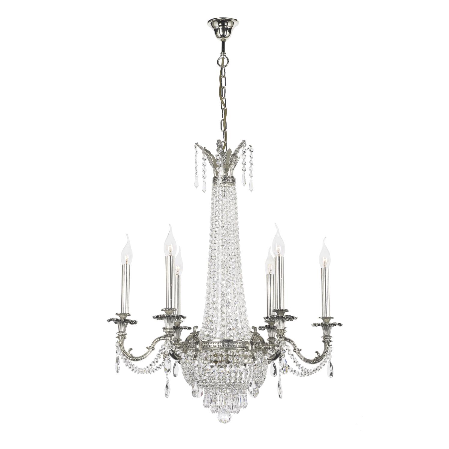 Допускается отличие страны-изготовителя, указанной в характеристиках. Линии производства могут находиться в нескольких государствах. Это не влияет на качество изготовления товара: все заводы данного бренда работают по общим стандартам, а готовые изделия проходят соответствующий контроль.Италия Коллекция Ancona Silver ЦветЦвет арматуры Серебро Цвет Серебро Материал арматуры Металл РазмерыВысота (мм) 800 Диаметр (мм) 700 Ширина (мм) 700 ЭлектрикаКоличество ламп (шт) 6 Цоколь E14 Тип лампы Накаливания Мощность лампы (Вт) 40 Общая мощность (Вт) 240 Напряжение (В) 220 Площадь освещения 13.3 Дополнительная информацияСтепень защиты (IP) IP20 Место установки на потолок Тип подвеса На цепи -