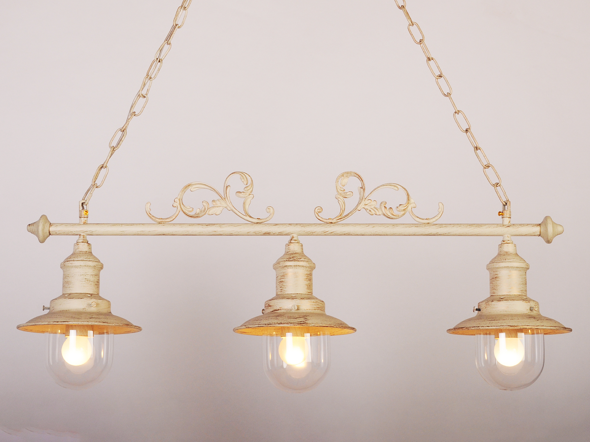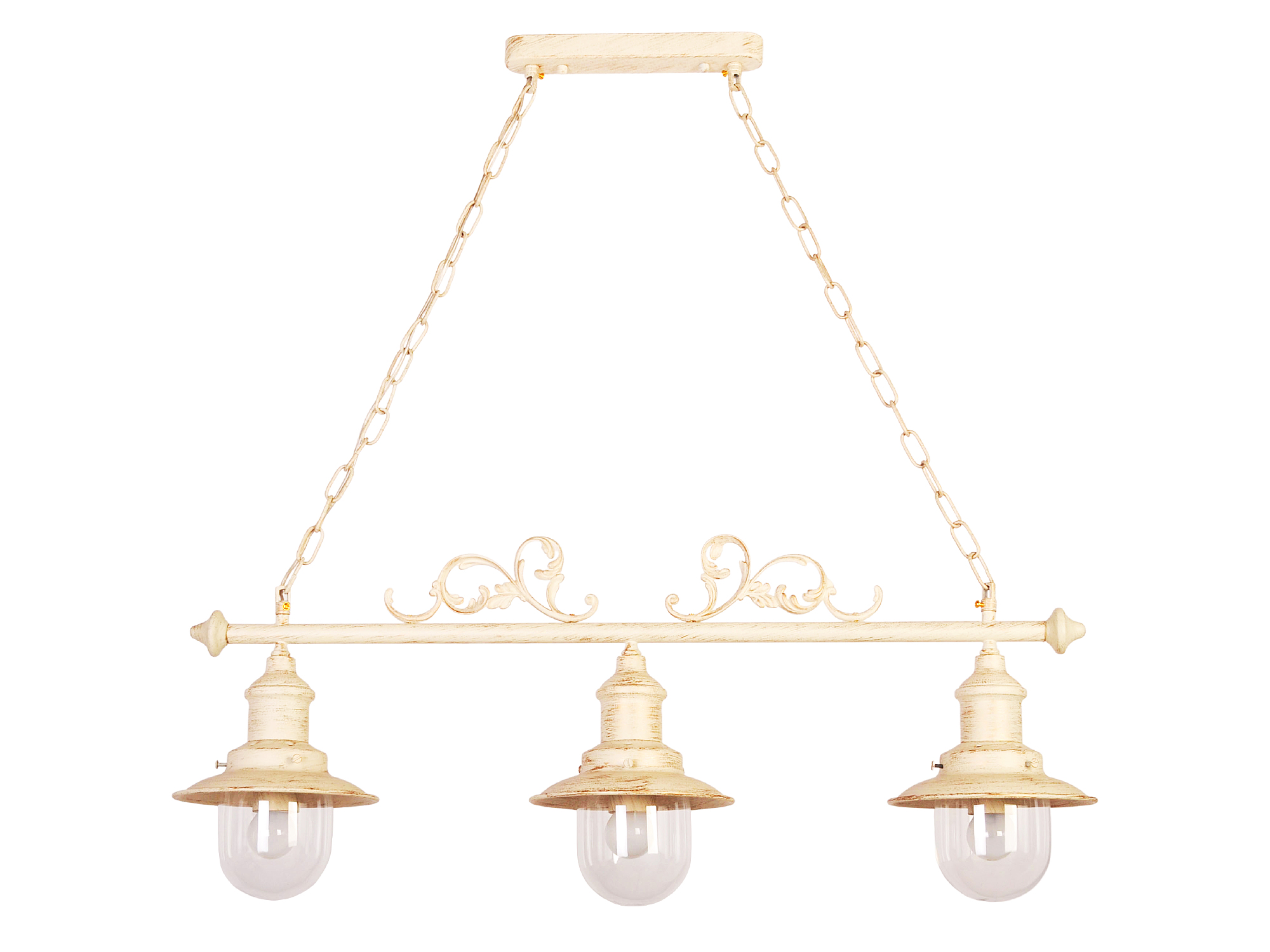 Допускается отличие страны-изготовителя, указанной в характеристиках. Линии производства могут находиться в нескольких государствах. Это не влияет на качество изготовления товара: все заводы данного бренда работают по общим стандартам, а готовые изделия проходят соответствующий контроль.Германия Коллекция Annette ЦветЦвет арматуры Кремовый Цвет Кремовый Материал арматуры Металл Цвет плафона прозрачный Материал плафона Стекло РазмерыВысота (мм) 900 Длина (мм) 850 Ширина (мм) 250 ЭлектрикаКоличество ламп (шт) 3 Цоколь E27 Тип лампы Светодиодная, Накаливания Мощность лампы (Вт) 40 Напряжение (В) 220 Площадь освещения 8 Дополнительная информацияСпособ крепления Планка Степень защиты (IP) IP20 Место установки на потолок Вес (Кг) 3.12 Тип подвеса На цепи -