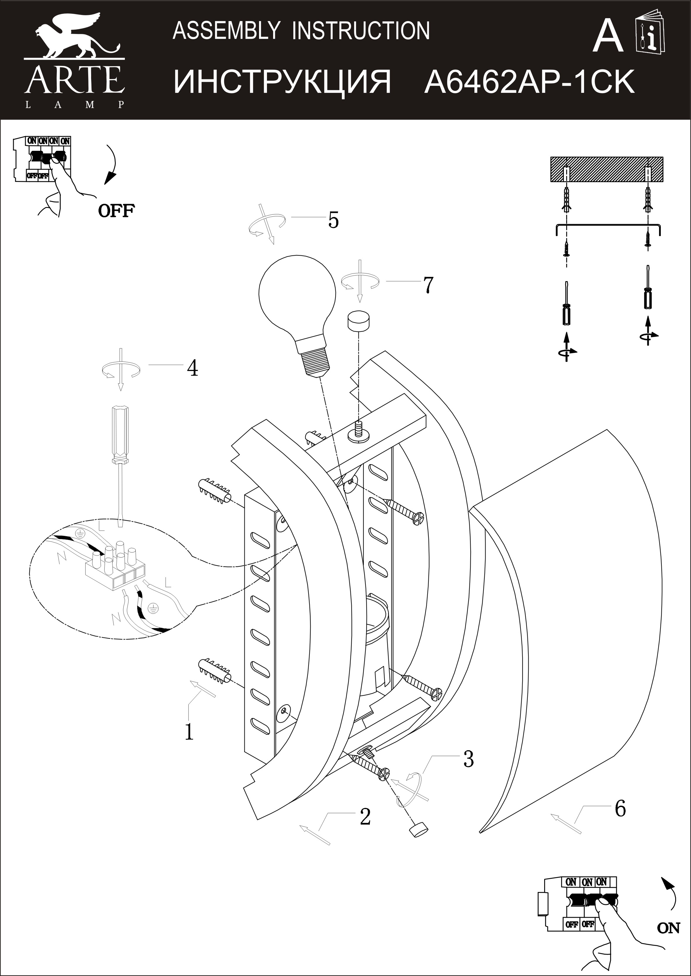 Производитель Arte Lamp Артикул A6462AP-1CK Страна