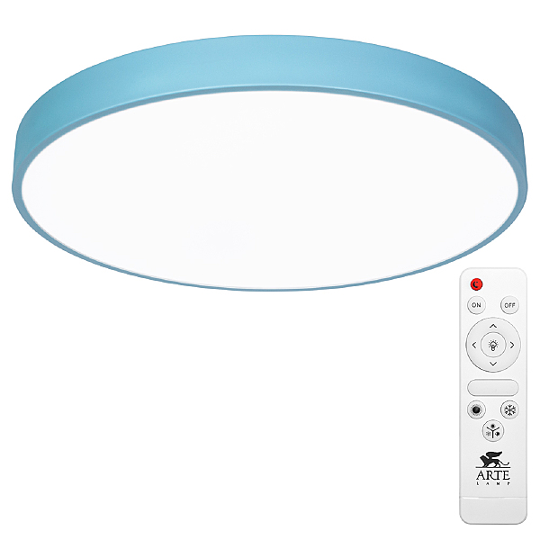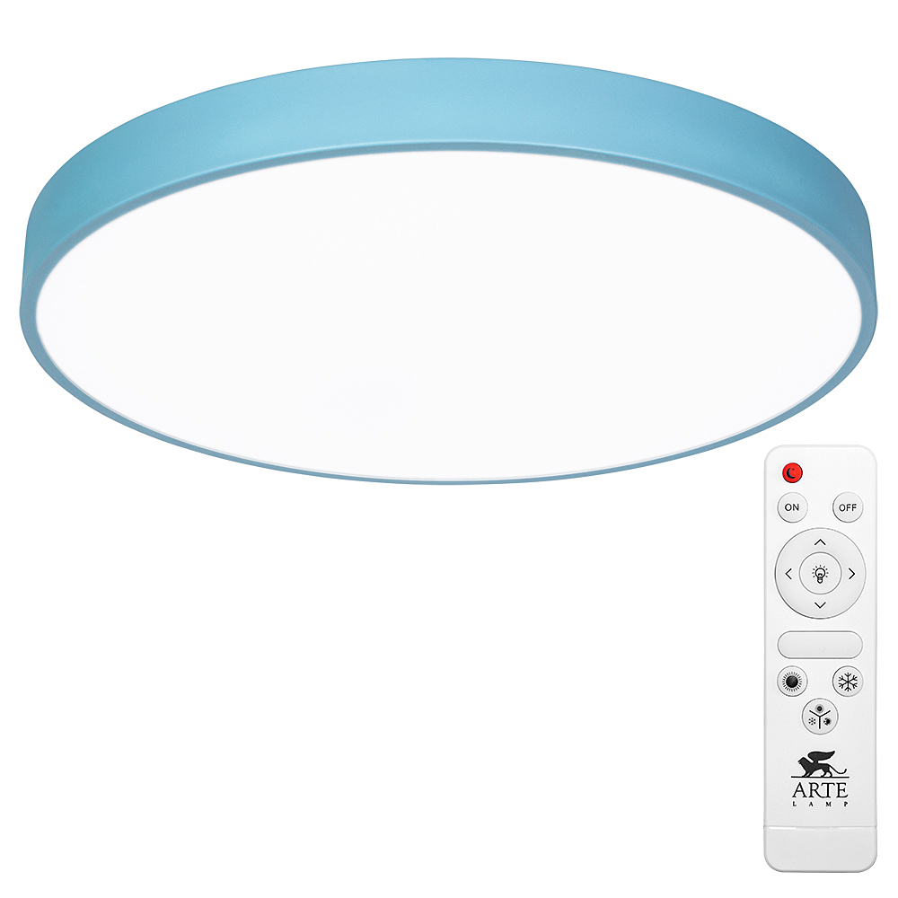 Допускается отличие страны-изготовителя, указанной в характеристиках. Линии производства могут находиться в нескольких государствах. Это не влияет на качество изготовления товара: все заводы данного бренда работают по общим стандартам, а готовые изделия проходят соответствующий контроль.Италия Коллекция Arena ЦветЦвет арматуры Голубой Цвет Голубой Материал арматуры Металл крашеный Цвет плафона Белый Материал плафона Пластик РазмерыВысота (мм) 50 Диаметр (мм) 500 Ширина (мм) 500 ЭлектрикаКоличество ламп (шт) 1 Цоколь LED Тип лампы Светодиодная Лампочки в комплекте Лампы в комплекте Мощность лампы (Вт) 72 Напряжение (В) 220 Световой поток 5400 Цветовая температура 2700-4500 Дополнительная информацияСтепень защиты (IP) IP20 Вес (Кг) 2,375 Техническая оссобеность Ночной режим, Регулировка яркости, Полностью светодиодная, Регулировка цветовой температуры Тип управления Пульт ДУ -