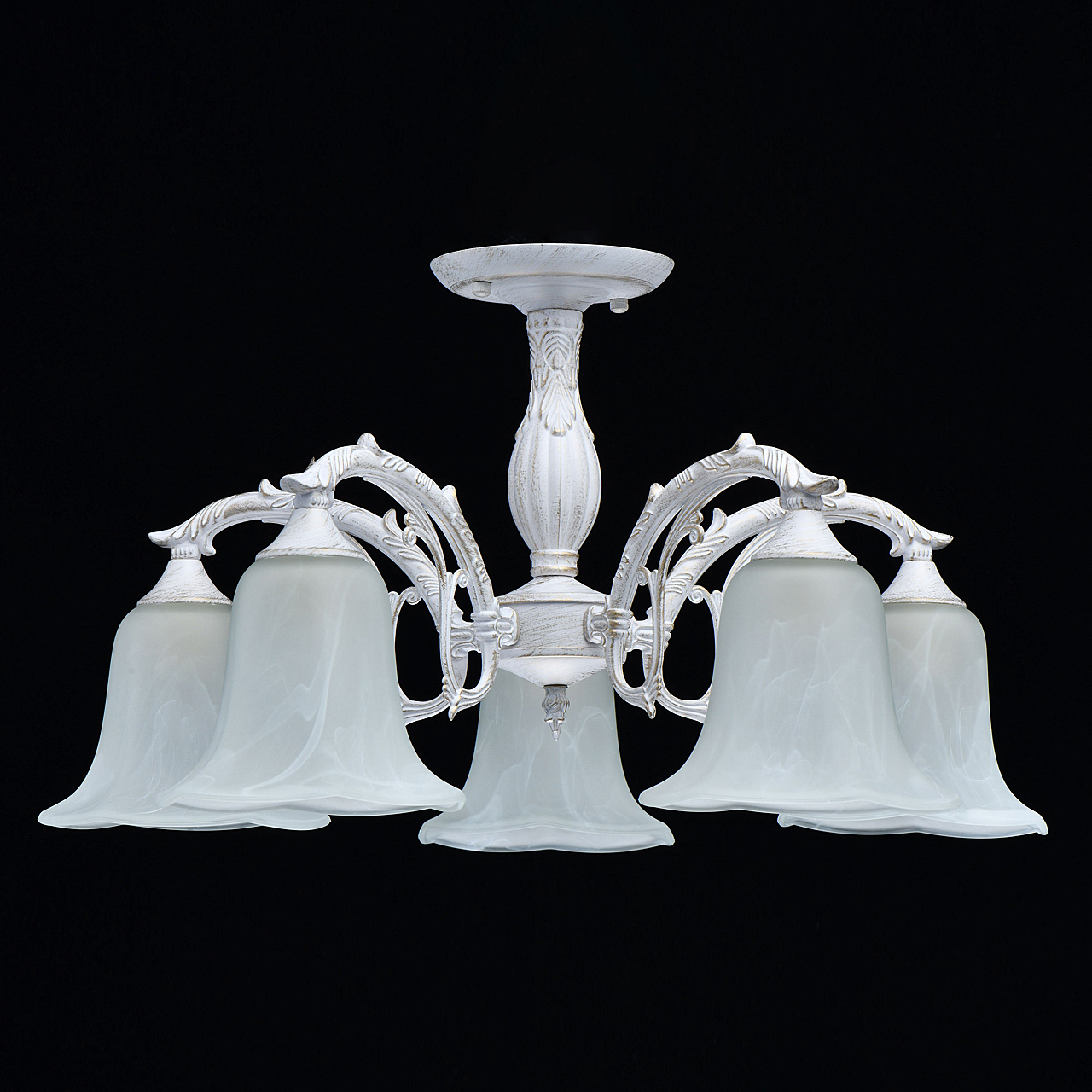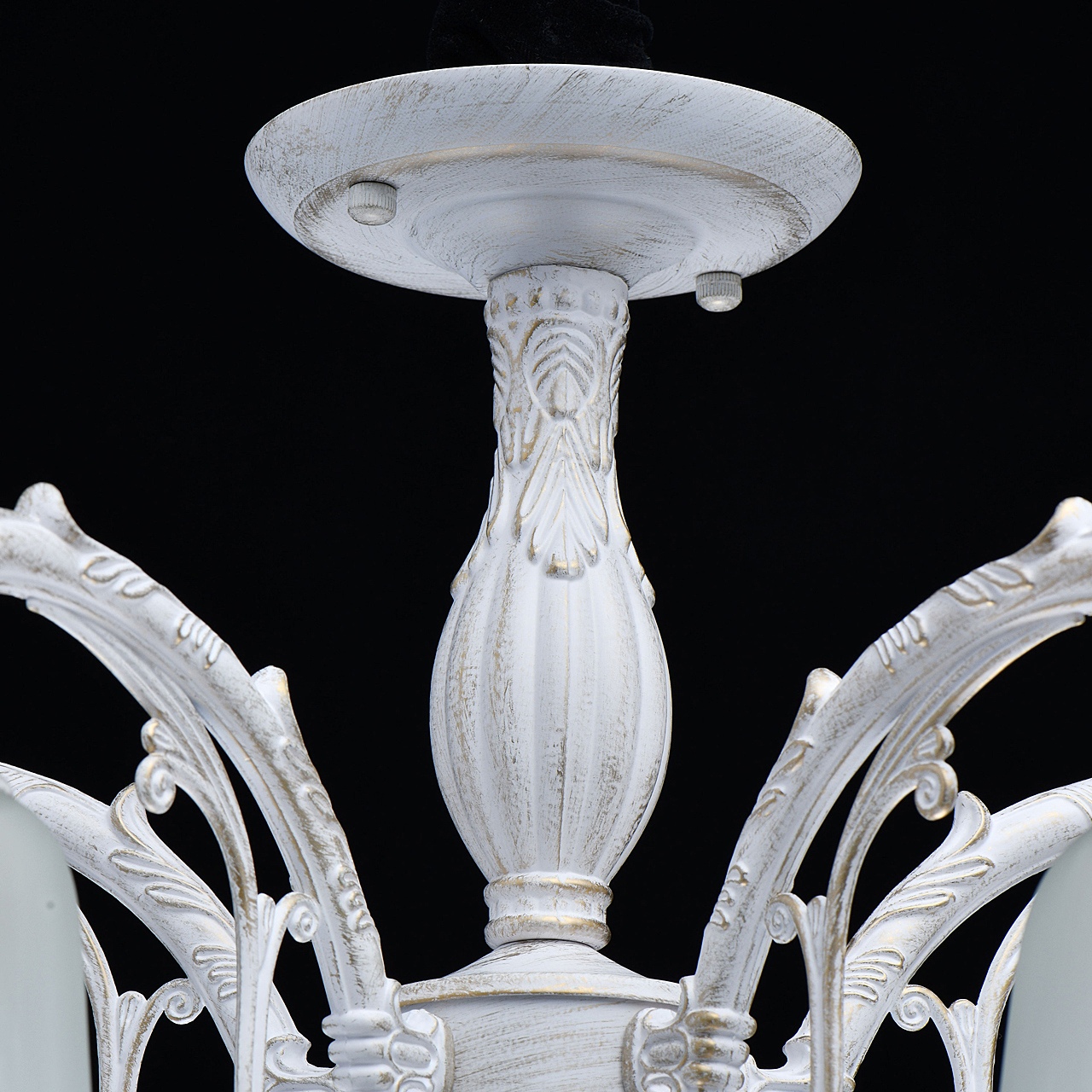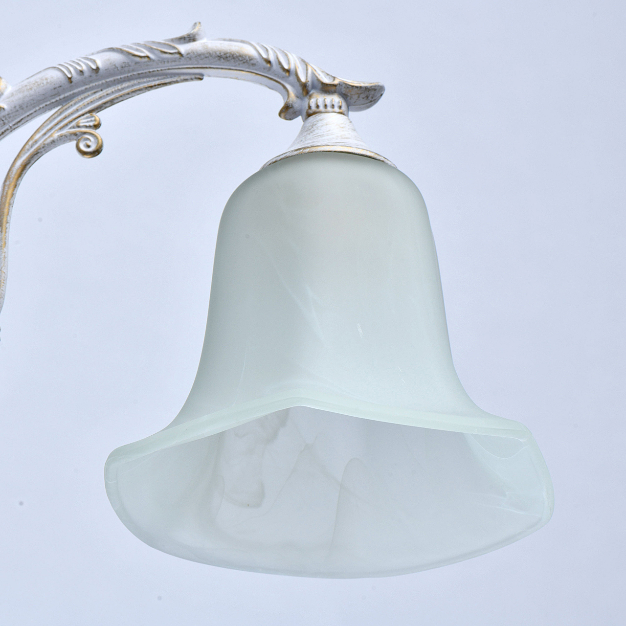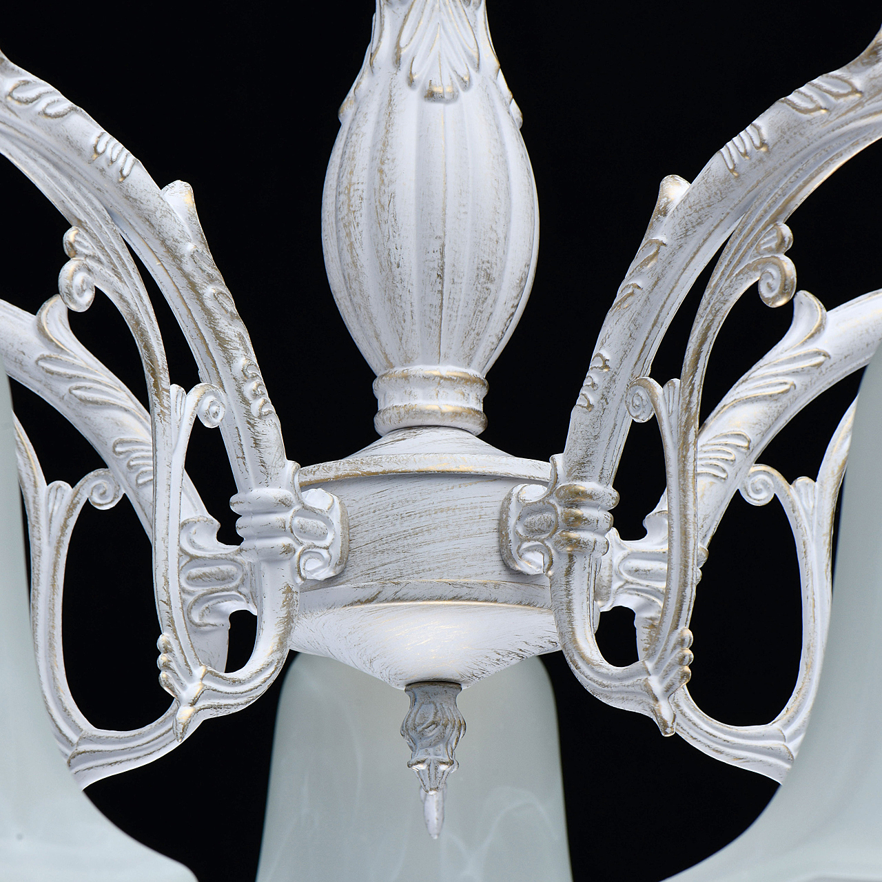 Дизайн в стиле неоклассики в тренде.Компактная высота идеальна для стандартной высоты потолка.Универсальный белый цвет основания с золотой патиной для интерьеров любой цветовой гаммы.Плафоны из алебастрового стекла мягко рассеивают светДекор художественного литья на рожках
