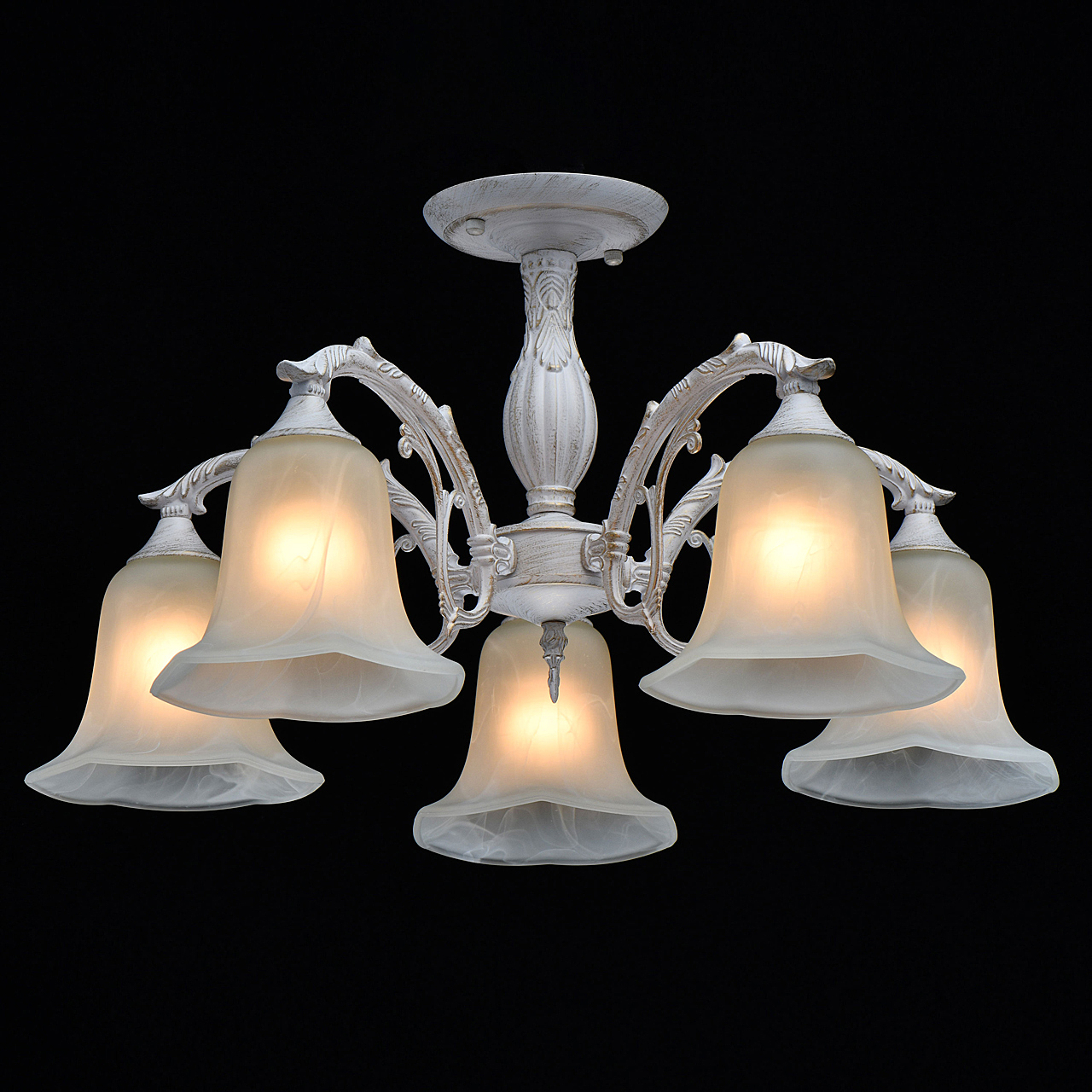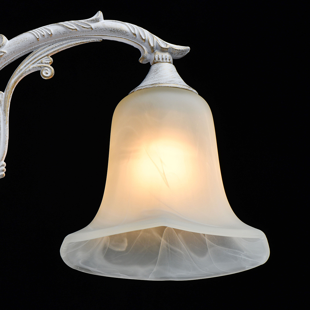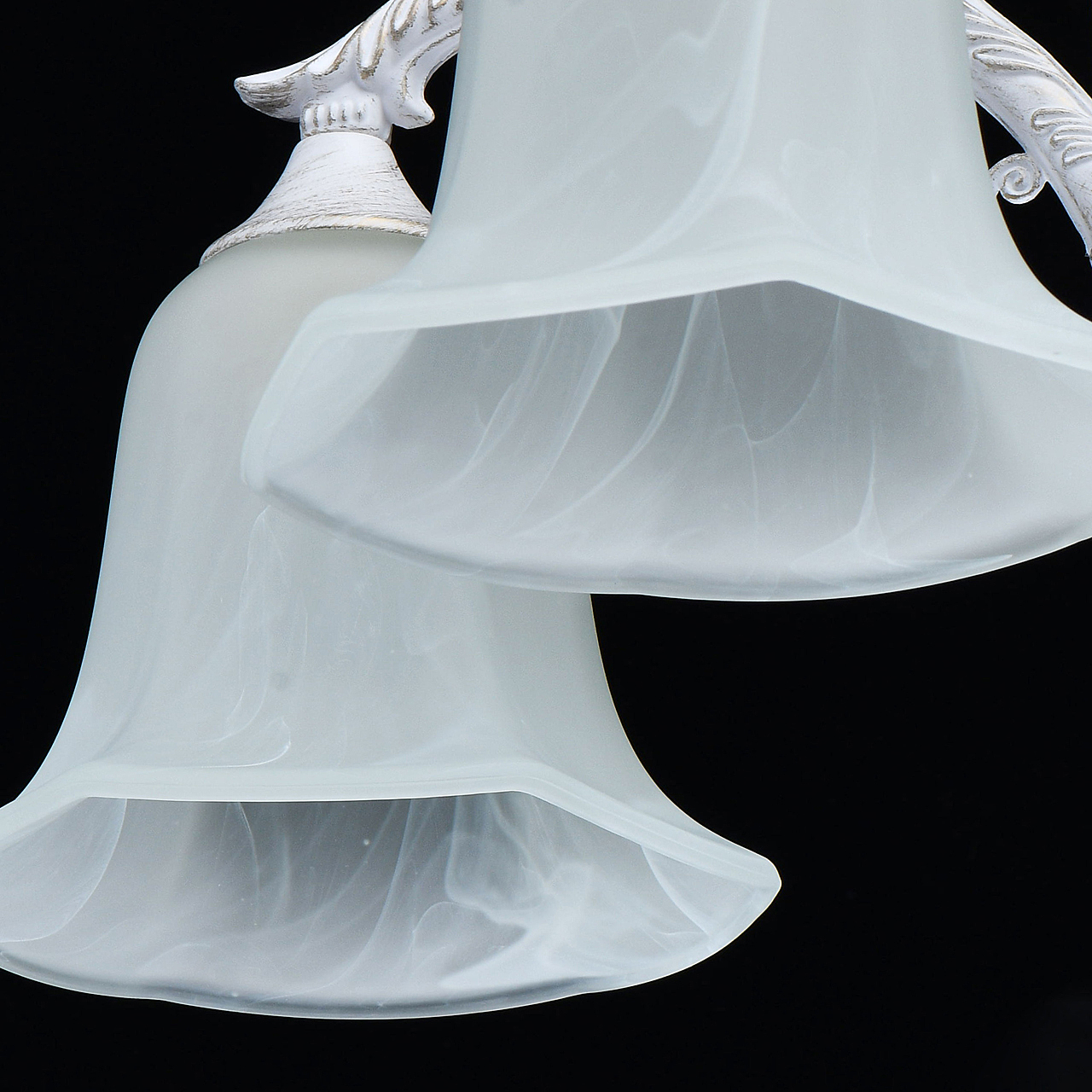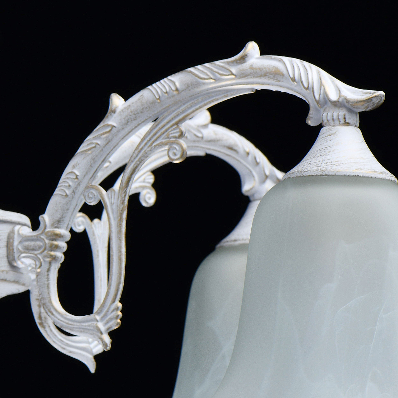 Дизайн в стиле неоклассики в тренде.Компактная высота идеальна для стандартной высоты потолка.Универсальный белый цвет основания с золотой патиной для интерьеров любой цветовой гаммы.Плафоны из алебастрового стекла мягко рассеивают светДекор художественного литья на рожках