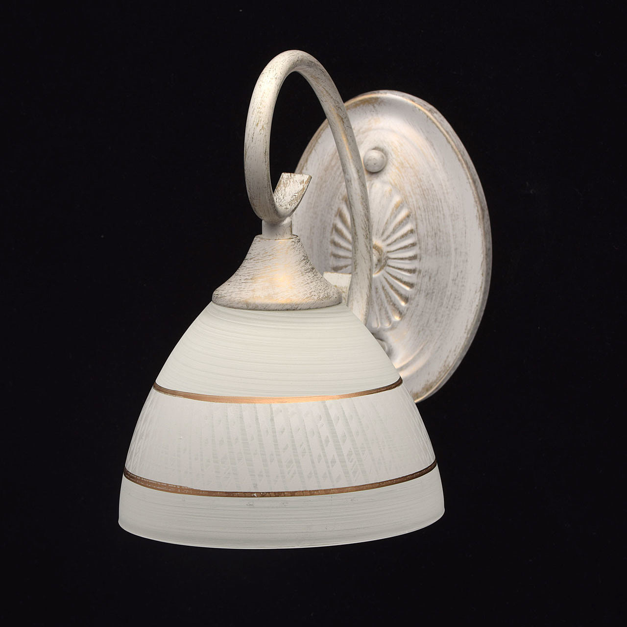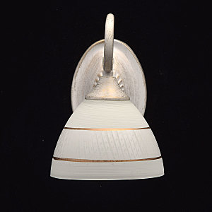 Изящное бра из коллекции "Ариадна" станет отличным дополнением классических интерьеров. Металлическое основание нежного белого оттенка подчеркнуто эффектом патинирования в цвет золота. В золотом тоне выполнены и полоски на белом стеклянном плафоне.
