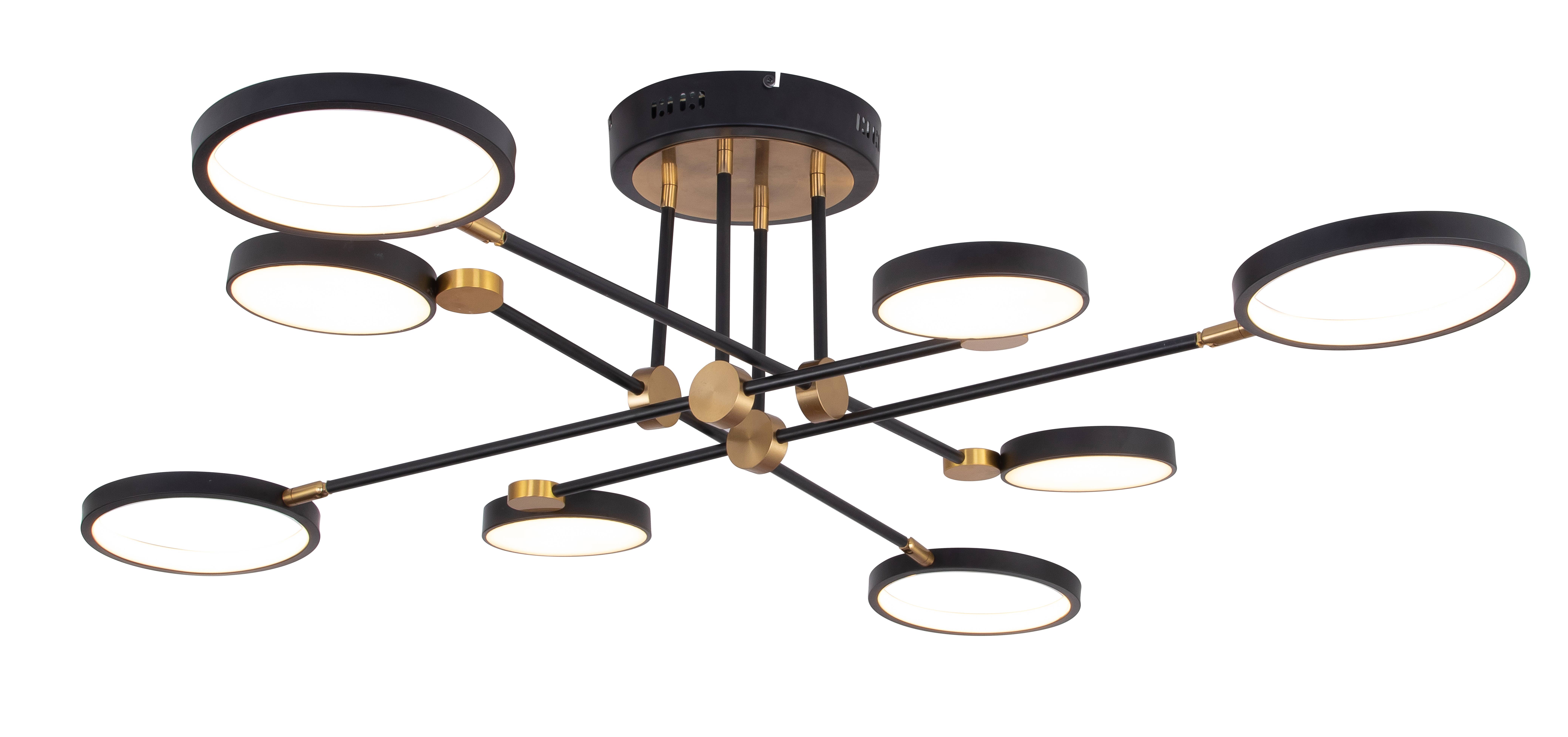 <p>Стильная светодиодная люстра Arista на штанге. Плафоны в форме колец разных размеров встроены в металлический каркас, образуя цельную конструкцию. Плафоны с большим диаметром имеют механизм регулировки, который позволяет настроить угол освещения на свой вкус. Металлический каркас декорирован вставками золотого цвета, которые акцентируют внимание на неподвижных плафонах люстры и обогащают образ всей конструкции. Диаметр всей люстры составляет 124 см, что позволяет охватить 18 м² площади для освещения комнаты. Данная модель станет отличным источником света для зала, гостиной или кухни.</p>
