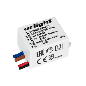 Источник тока с гальванической развязкой для светильников и мощных светодиодов. Входное напряжение 220-240 VAC. Выходные параметры: 1.8-4 В, 350 mА, 1.4 Вт. Встроенный PFC >0.4. Негерметичный пластиковый корпус IP 20. Габаритные размеры длина 34 мм, ширина 22.8 мм, высота 17 мм. Гарантийный срок 5 лет.