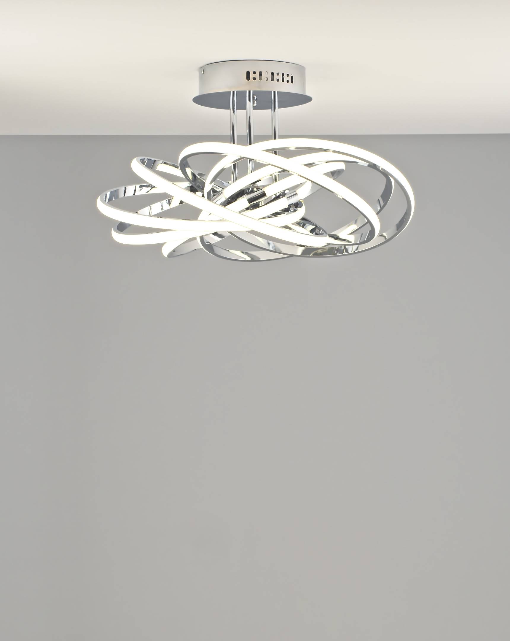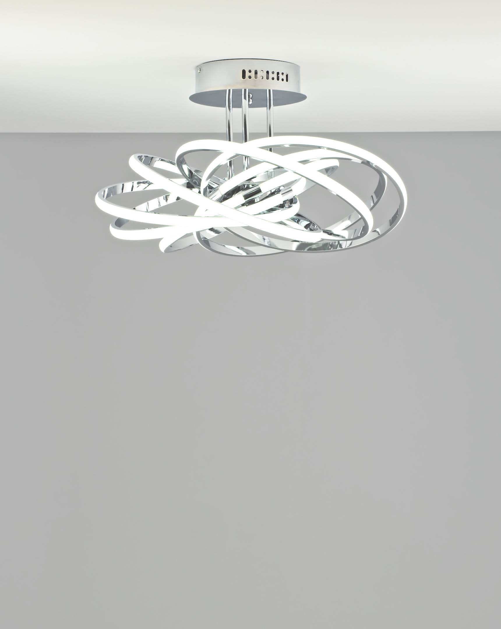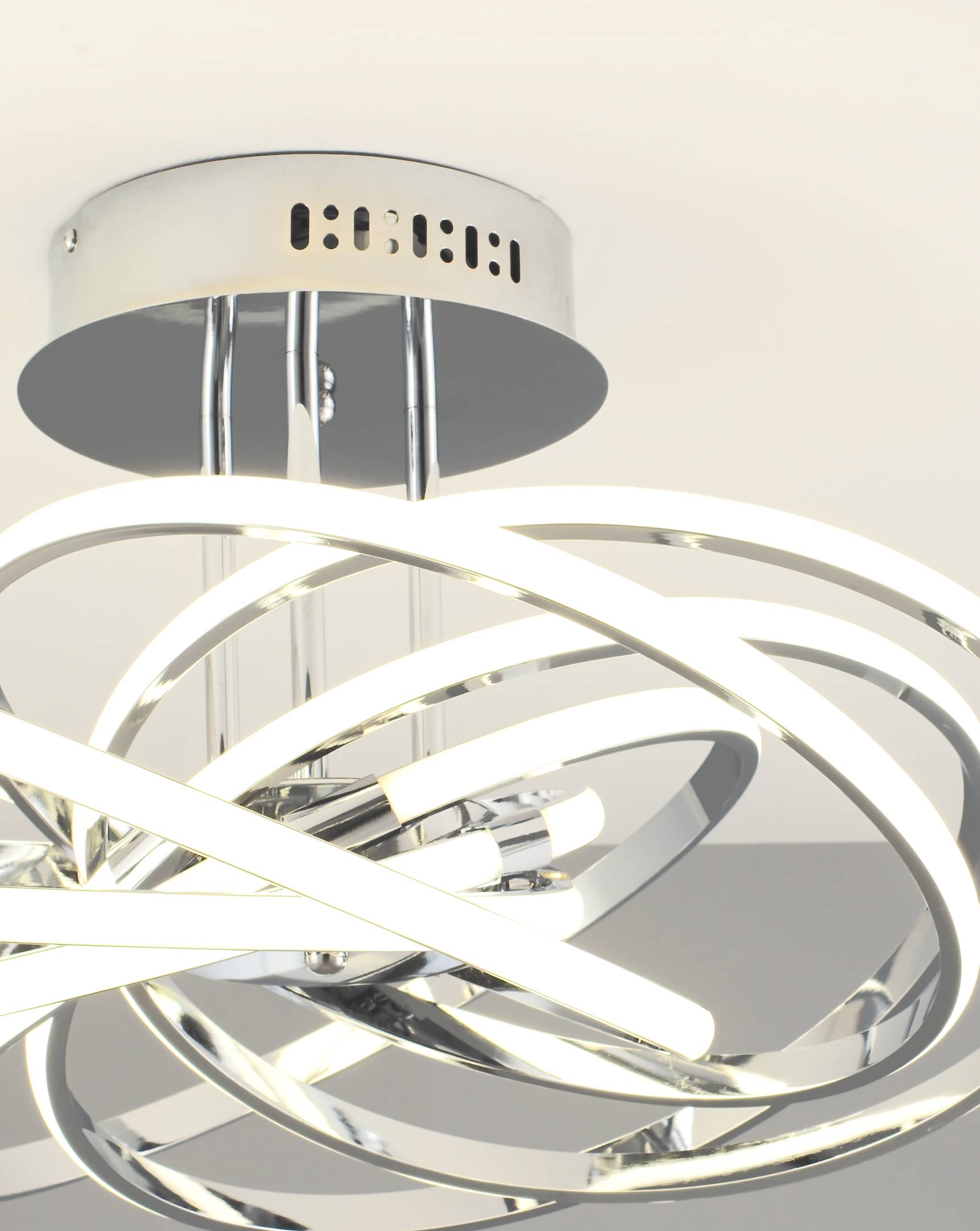 <p>Современная светодиодная потолочная люстра из серии Arrow. Светодиодные ленты общей мощность 280 Вт встроены в металлические кольца, образующие геометрический узор. Акриловый слой, расположенный поверх ленты, способствует мягкому и равномерному освещению. Благодаря пульту управления можно настроить интенсивность света и цветовую температуру в пределах 3000K-6500K. Лаконичная люстра с изящным дизайном станет прекрасным источником света в любом интерьере в современном стиле.</p>