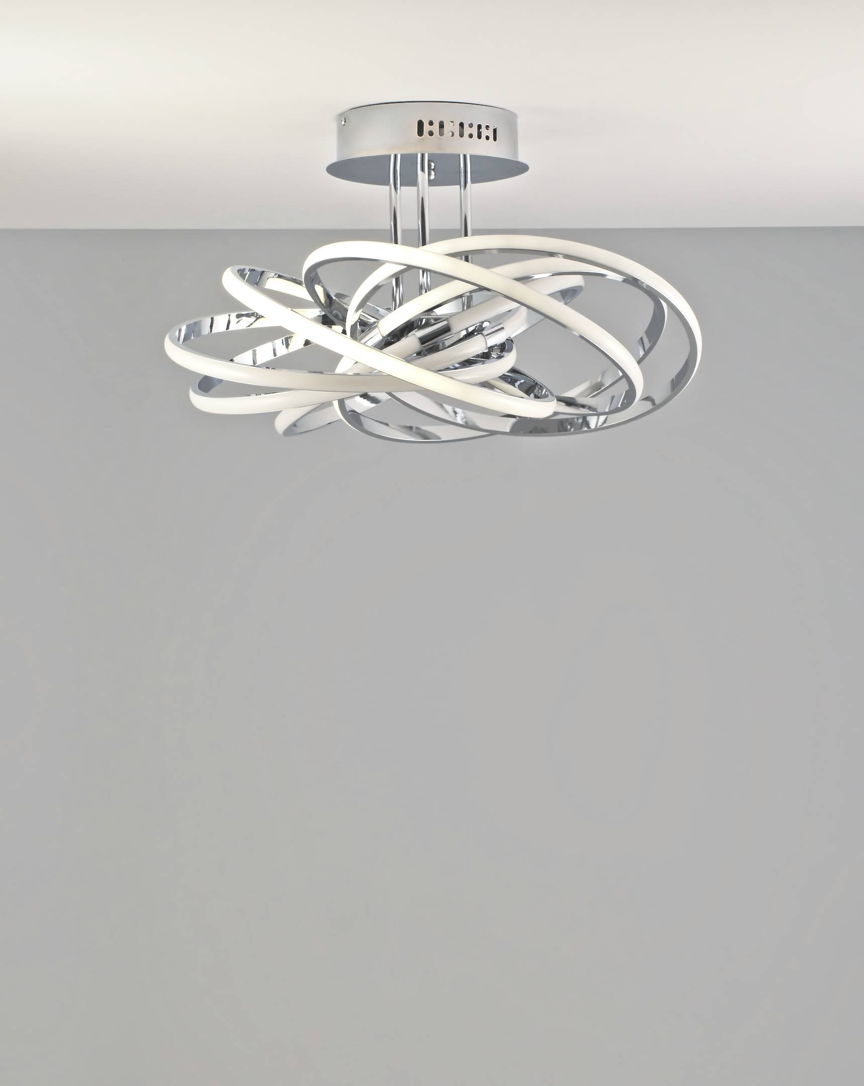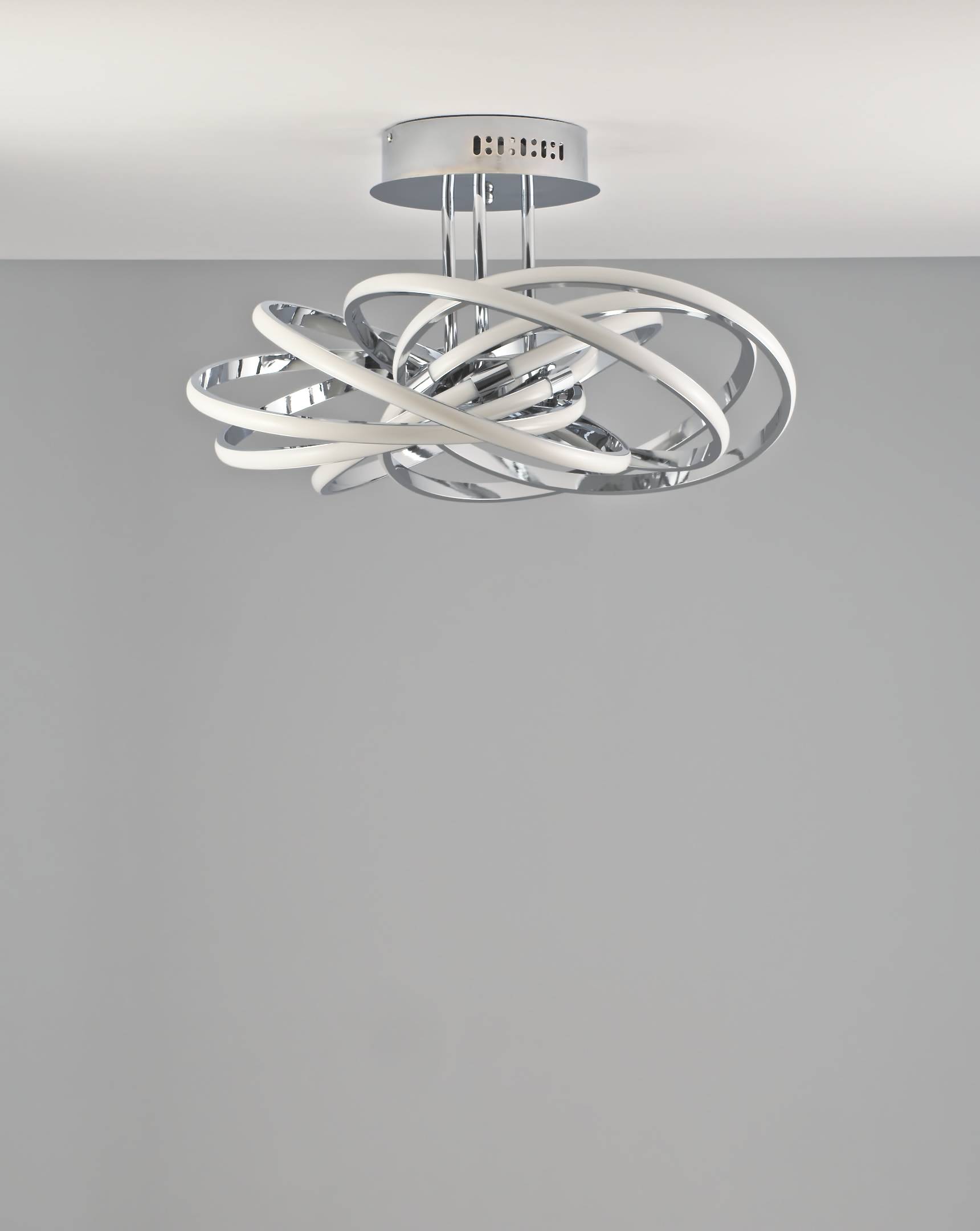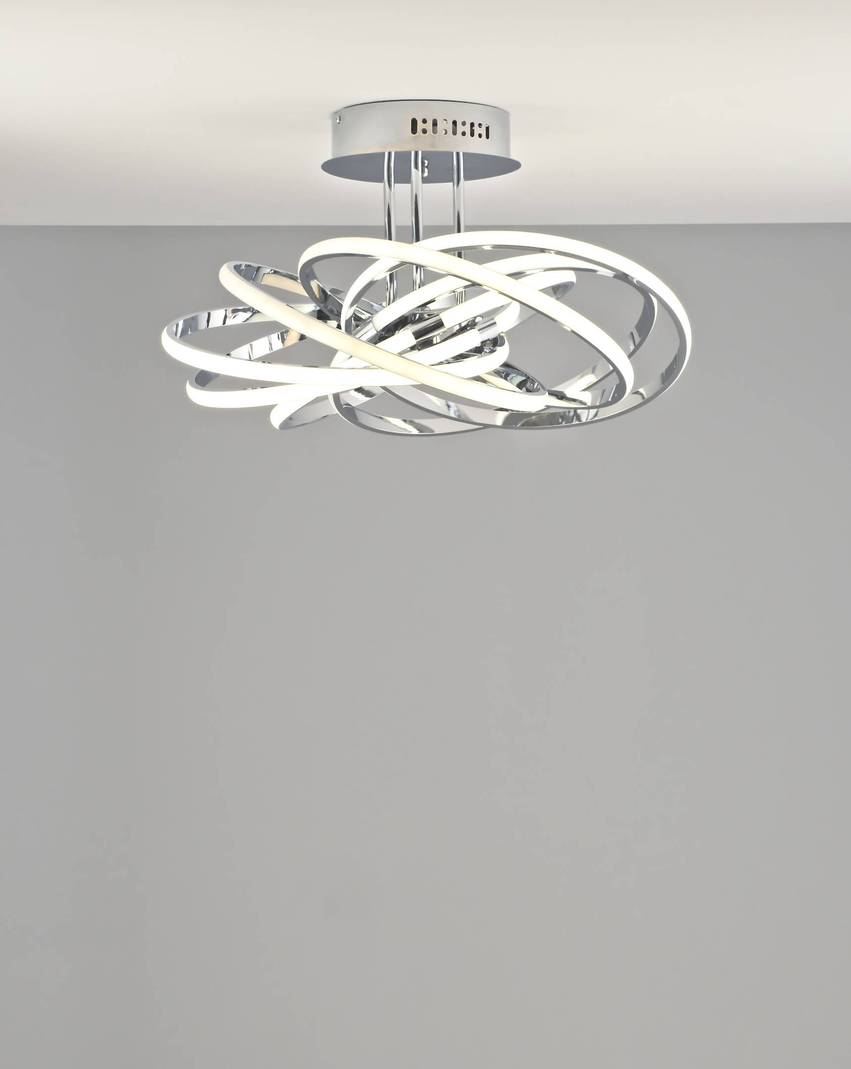 <p>Современная светодиодная потолочная люстра из серии Arrow. Светодиодные ленты общей мощность 280 Вт встроены в металлические кольца, образующие геометрический узор. Акриловый слой, расположенный поверх ленты, способствует мягкому и равномерному освещению. Благодаря пульту управления можно настроить интенсивность света и цветовую температуру в пределах 3000K-6500K. Лаконичная люстра с изящным дизайном станет прекрасным источником света в любом интерьере в современном стиле.</p>
