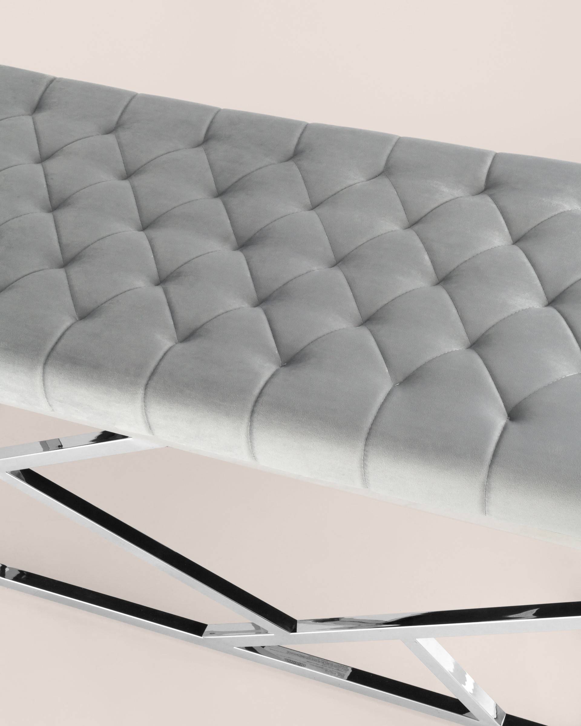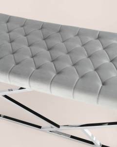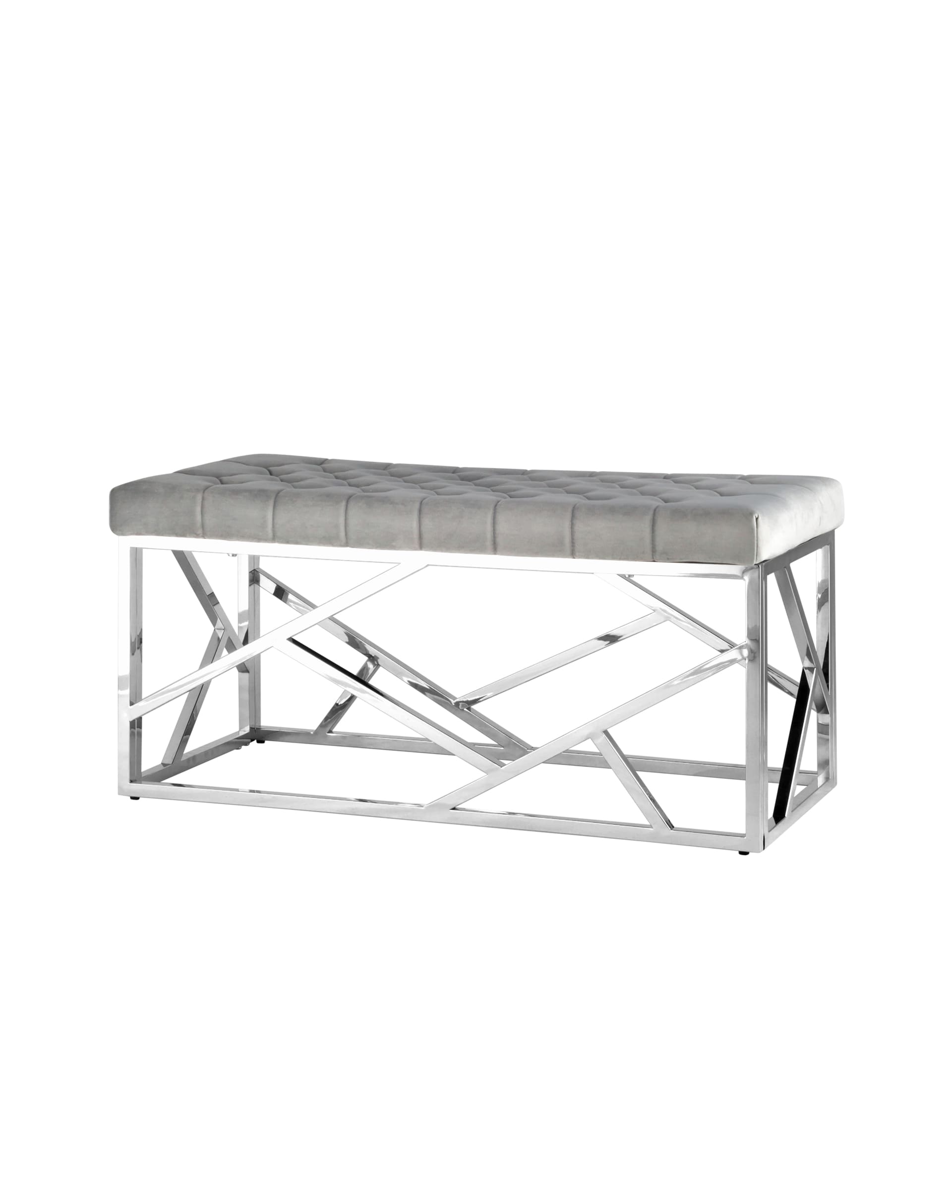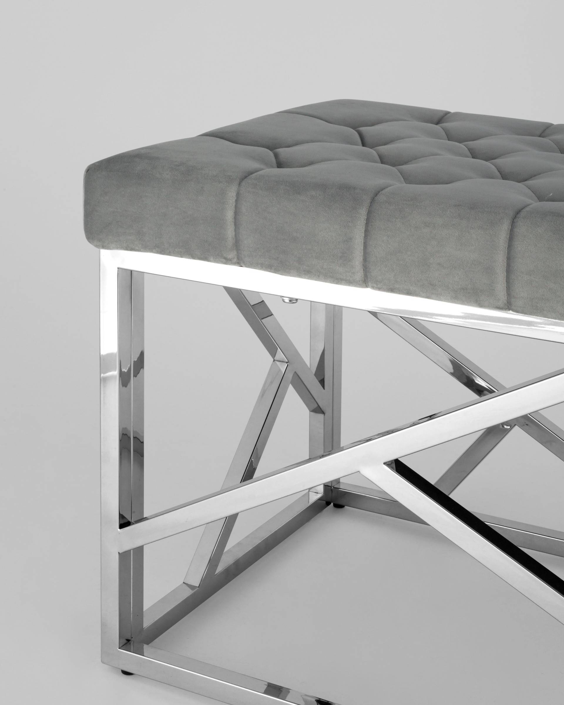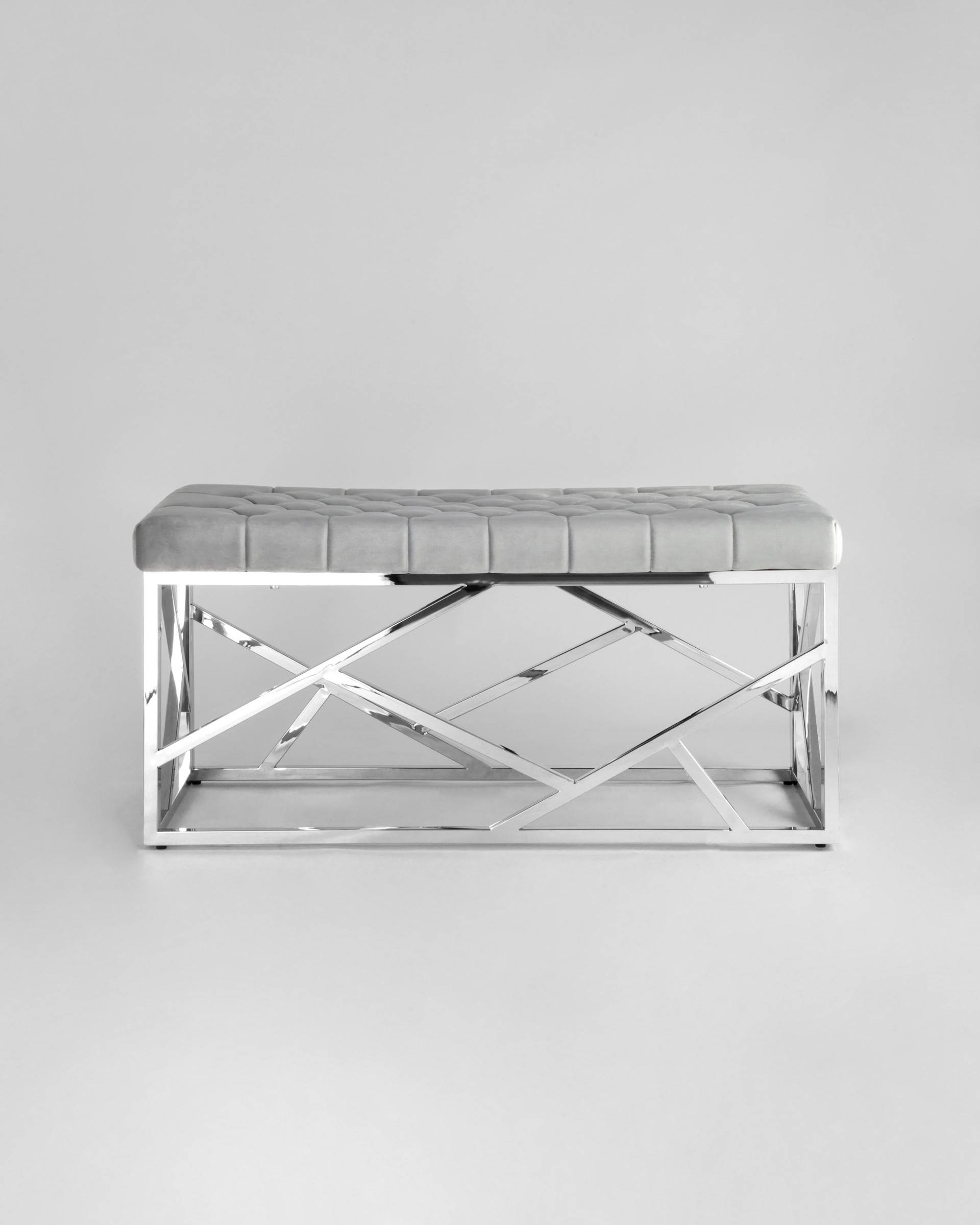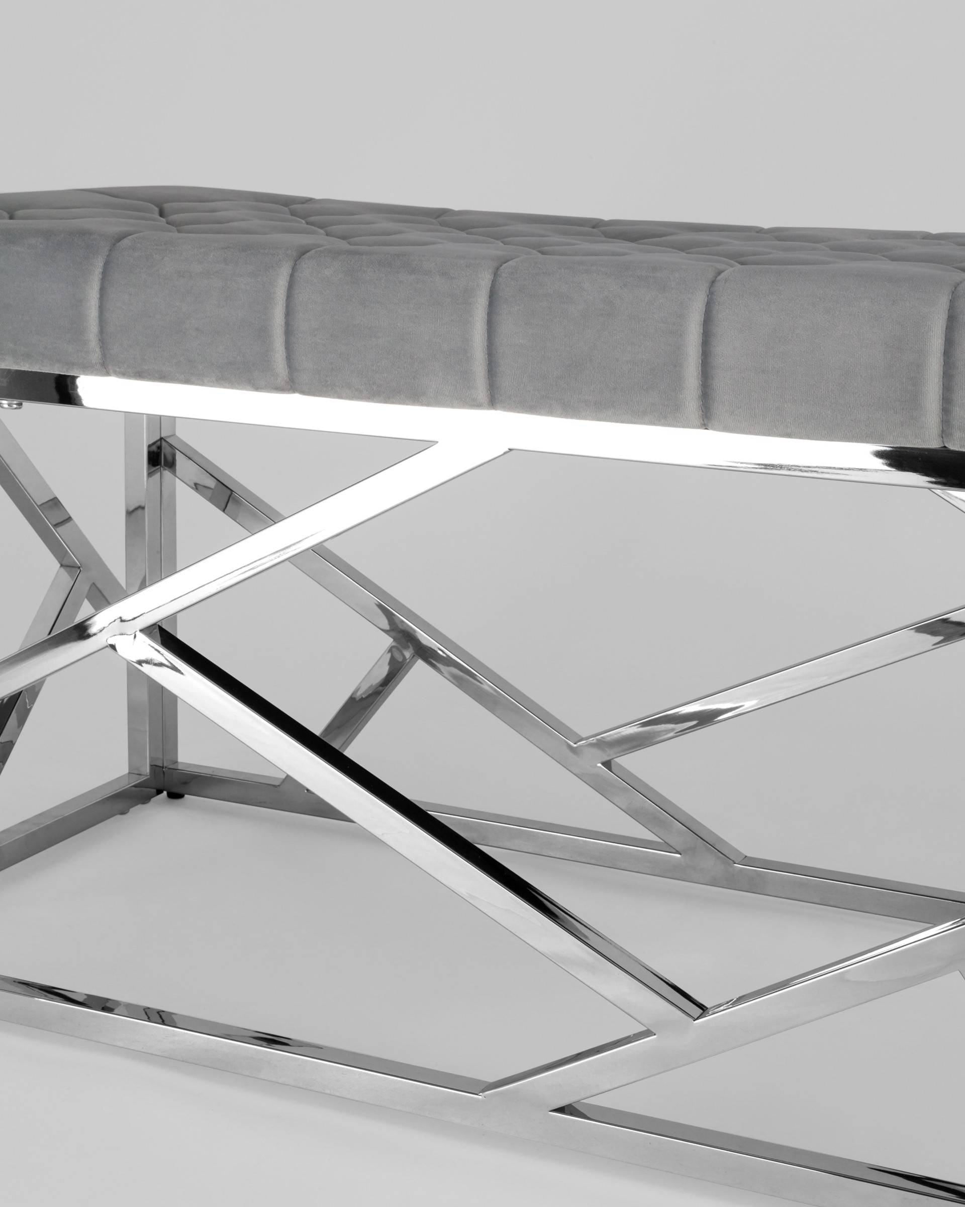 Банкетка-скамейка АРТ ДЕКО сталь серебро, нержавеющая сталь, обивка сиденья серый велюр