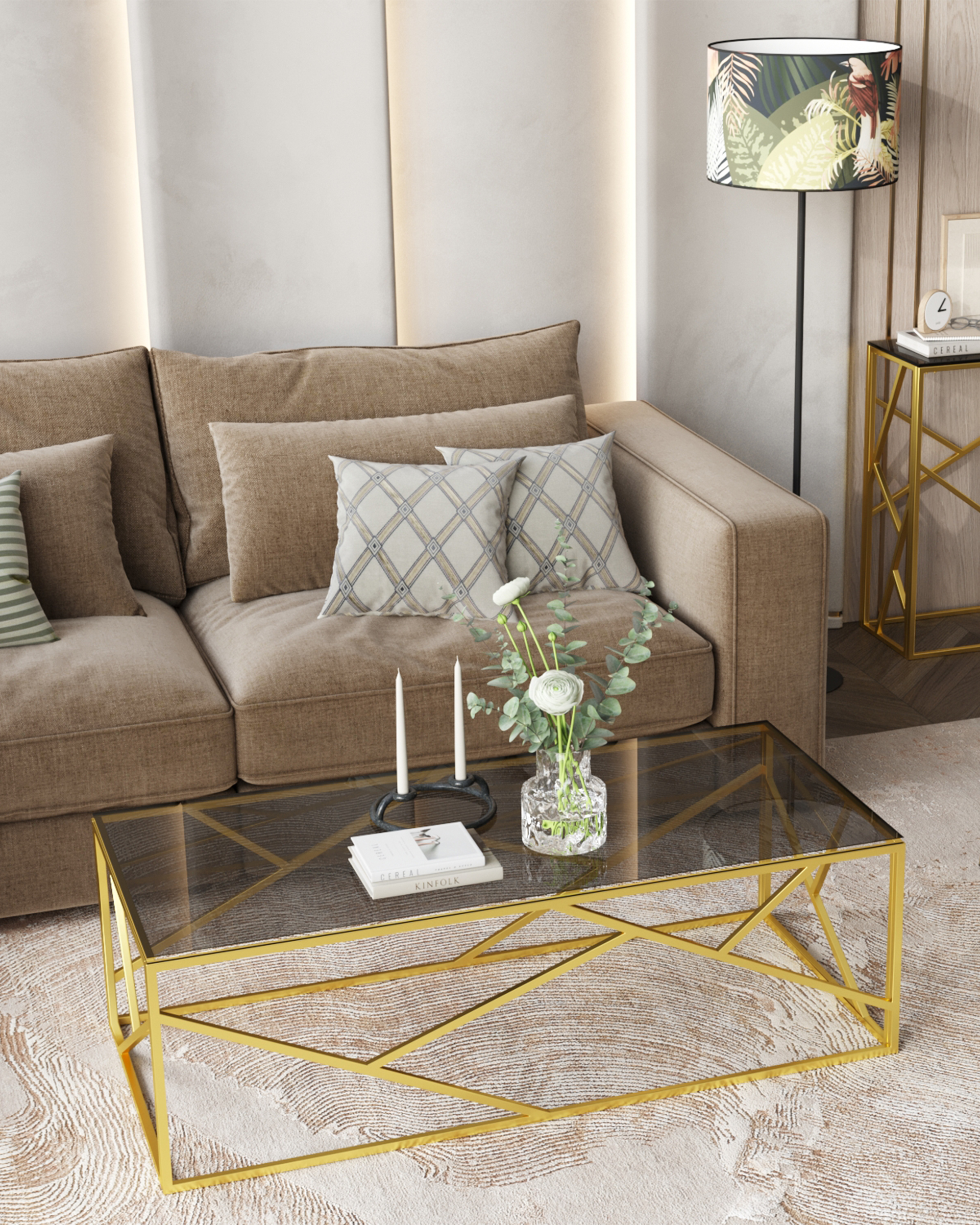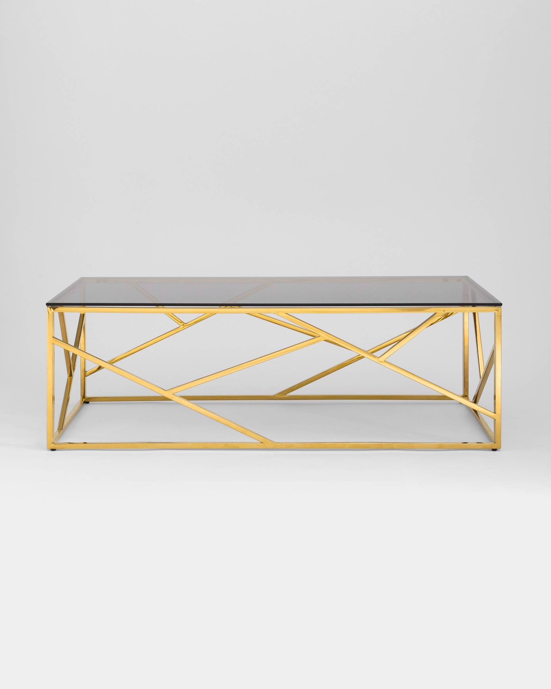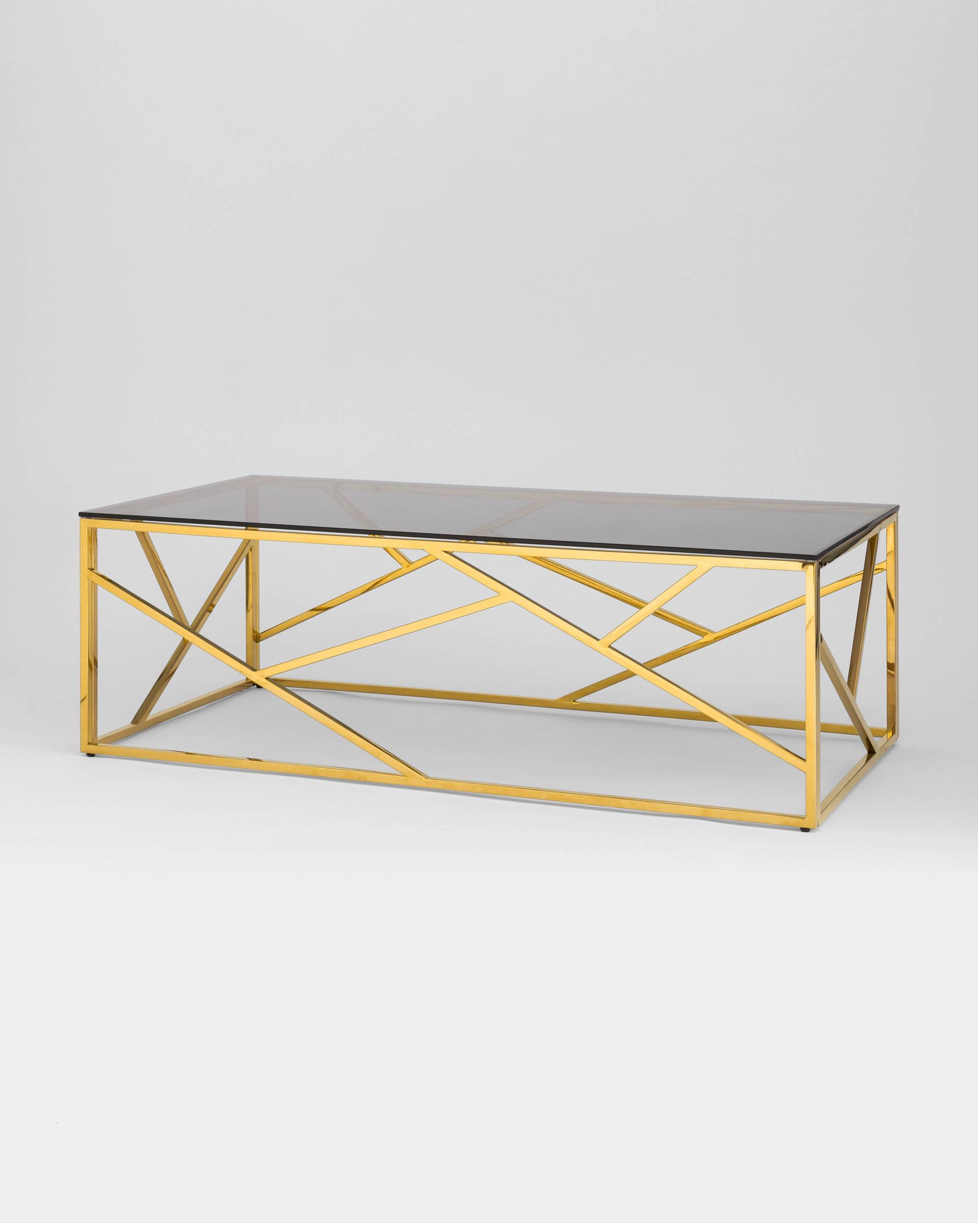 Стол журнальный 120*60 АРТ ДЕКО золото стекло smoke каркас нержавеющая сталь
