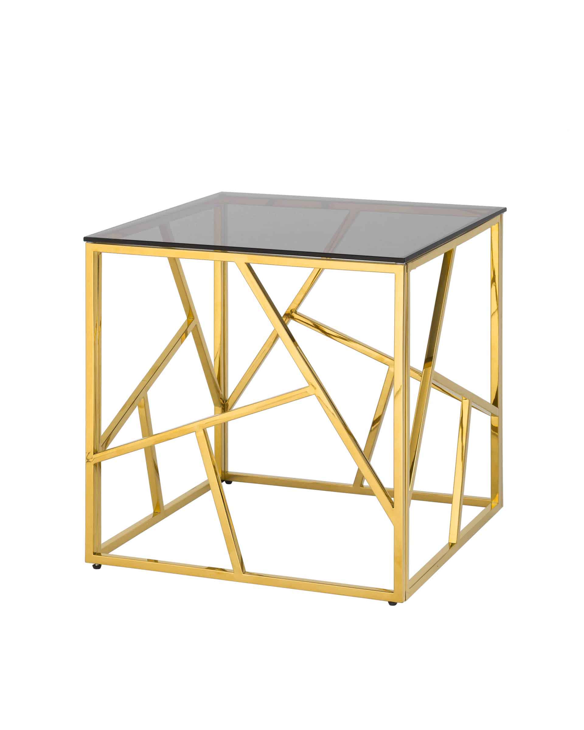 Стол Stool Group 55*55 АРТ ДЕКО золото стекло smoke, каркас нержавеющая сталь, столешница закаленное стекло