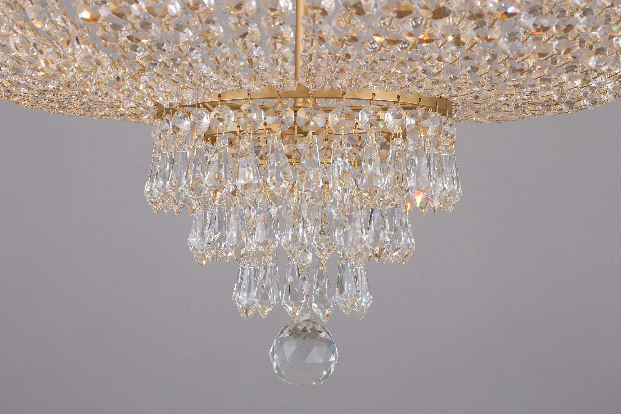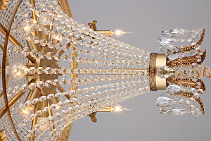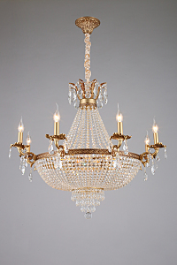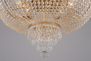 Допускается отличие страны-изготовителя, указанной в характеристиках. Линии производства могут находиться в нескольких государствах. Это не влияет на качество изготовления товара: все заводы данного бренда работают по общим стандартам, а готовые изделия проходят соответствующий контроль.Китай Коллекция Assolo ЦветЦвет арматуры Бронза Цвет Золото Материал арматуры Металл Цвет декора прозрачный Материал декора Хрусталь РазмерыВысота (мм) 1450 Диаметр (мм) 890 Высота минимальная (мм) 950 Ширина (мм) 890 ЭлектрикаКоличество ламп (шт) 16 Цоколь E14 Мощность лампы (Вт) 40 Напряжение (В) 220 Дополнительная информацияСпособ крепления Крюк Вес (Кг) 11 Тип подвеса На цепи -