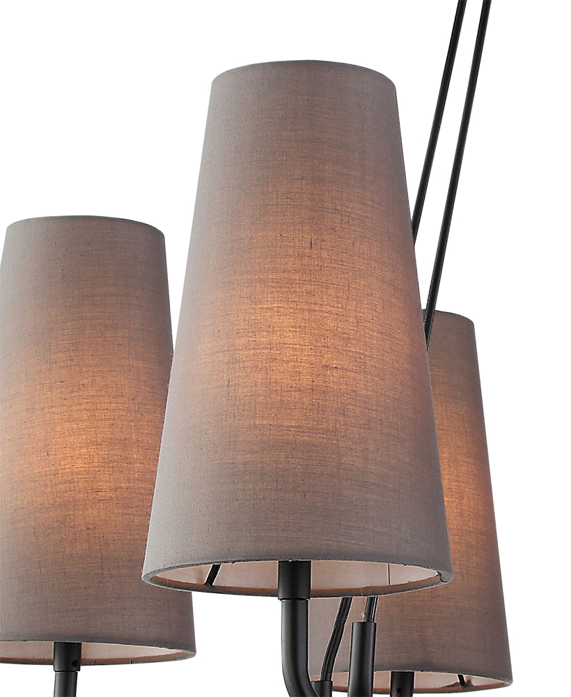 Допускается отличие страны-изготовителя, указанной в характеристиках. Линии производства могут находиться в нескольких государствах. Это не влияет на качество изготовления товара: все заводы данного бренда работают по общим стандартам, а готовые изделия проходят соответствующий контроль.Испания Коллекция Астарта ЦветЦвет арматуры Черный Цвет Черный Материал арматуры Металл Цвет плафона Серый Материал плафона Ткань РазмерыВысота (мм) 800 Длина (мм) 730 Ширина (мм) 730 ЭлектрикаКоличество ламп (шт) 6 Цоколь E14 Тип лампы Светодиодная, Накаливания, Энергосберегающая (КЛЛ) Лампочки в комплекте Нет в комплекте Мощность лампы (Вт) 60 Напряжение (В) 220 Площадь освещения 18 Дополнительная информацияСтепень защиты (IP) IP20 Вес (Кг) 2,2 Тип подвеса На тросах -