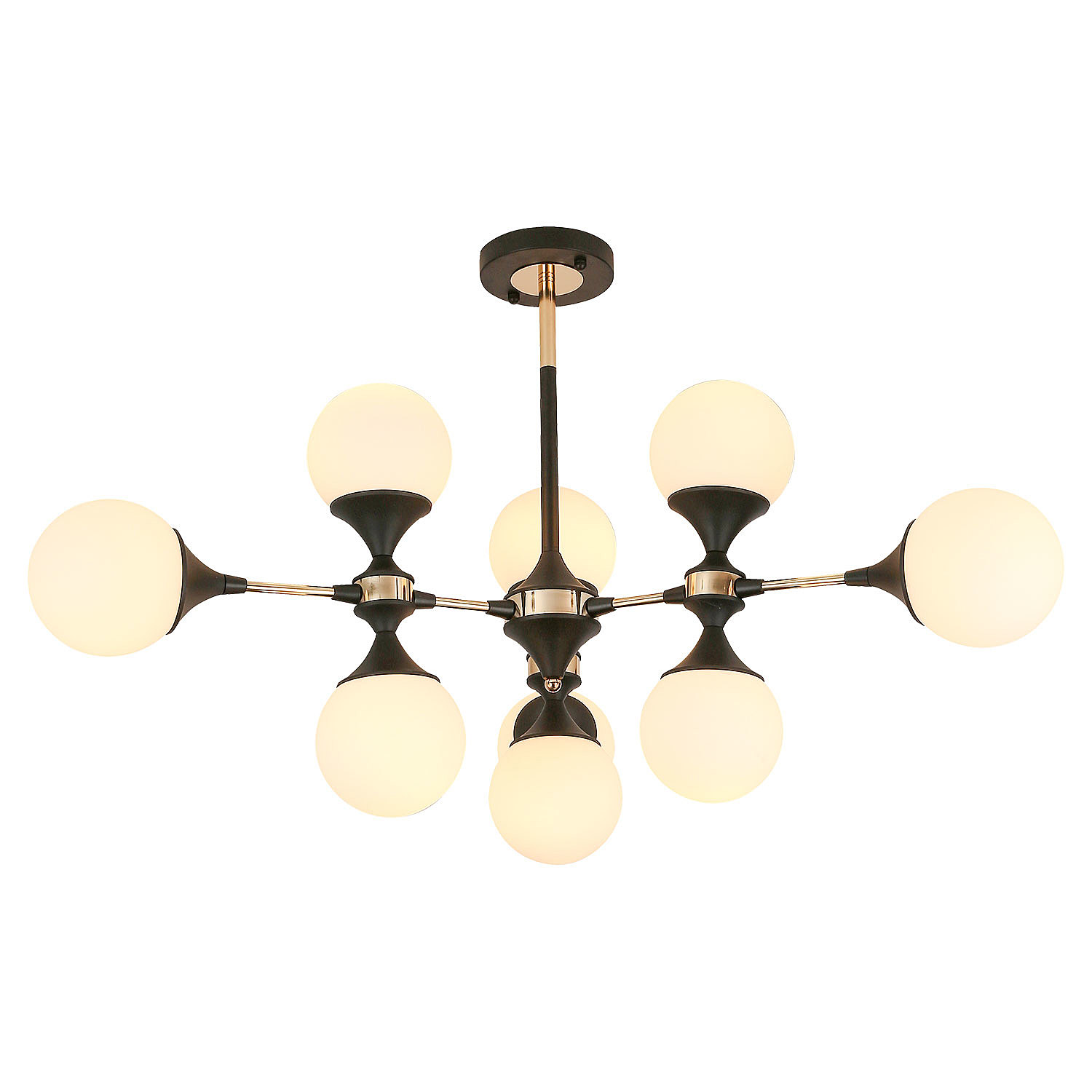 Допускается отличие страны-изготовителя, указанной в характеристиках. Линии производства могут находиться в нескольких государствах. Это не влияет на качество изготовления товара: все заводы данного бренда работают по общим стандартам, а готовые изделия проходят соответствующий контроль.Италия Коллекция Astoria ЦветЦвет арматуры Черный, матовое золото Цвет Черный Материал арматуры Металл Цвет плафона Белый Материал плафона Стекло РазмерыВысота (мм) 560 Диаметр (мм) 800 Высота минимальная (мм) 380 Ширина (мм) 880 ЭлектрикаКоличество ламп (шт) 9 Цоколь E27 Тип лампы Накаливания Лампочки в комплекте Нет в комплекте Мощность лампы (Вт) 40 Общая мощность (Вт) 360 Напряжение (В) 220 Дополнительная информацияСпособ крепления Планка Степень защиты (IP) IP21 Вес (Кг) 7,2 -