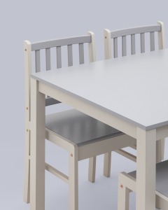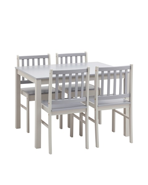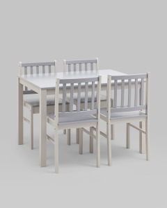 Обеденная группа ASTRID белый/серый из стола и четырех стульев деревянные, ножки стола и каркас стульев из массива гевеи