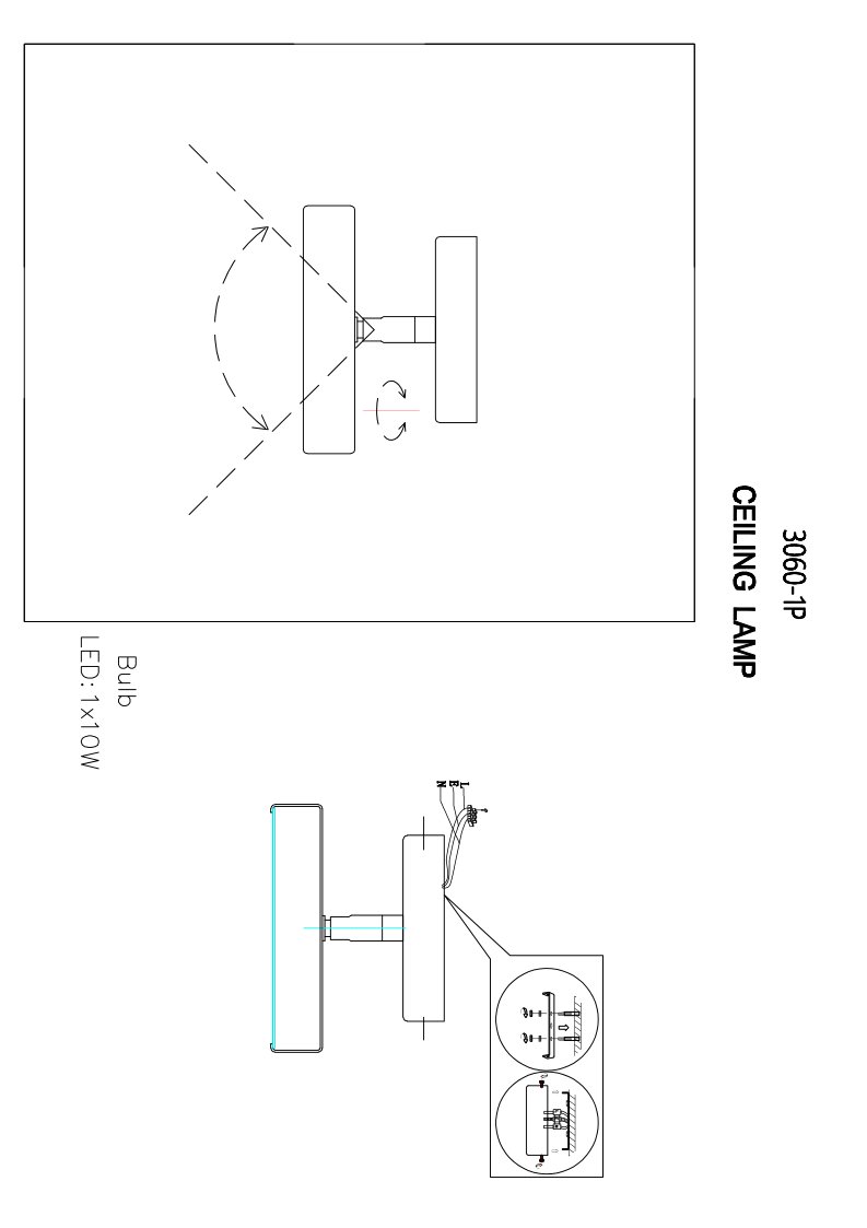 накладной светильник, каркас коричневого цвета, рассеиватель из белого акрила, угол поворота до 45градусов