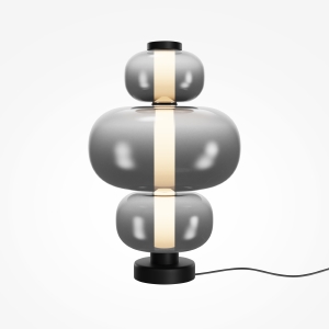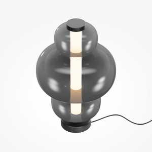 Арматура - металл, цвет - белый, черный. Плафоны окрашены в дымчатый или белый полупрозрачные цвета. В плафон установлен LED-источник света с мощным световым потоком. Цветовая температура - 3000К, угол рассеивания - 120 градусов. Внутренний рассеиватель из полупрозрачного акрила создает мягкое свечение. Предусмотрена функция диммирования: touch-переключатель обеспечивает плавное бесступенчатое управление.