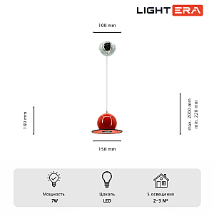 Допускается отличие страны-изготовителя, указанной в характеристиках. Линии производства могут находиться в нескольких государствах. Это не влияет на качество изготовления товара: все заводы данного бренда работают по общим стандартам, а готовые изделия проходят соответствующий контроль.Китай Коллекция Attabad ЦветЦвет арматуры Красный Цвет Красный Материал арматуры Металл Цвет плафона Красный Материал плафона Металл РазмерыВысота (мм) 2000 Диаметр (мм) 150 Высота минимальная (мм) 220 Диаметр основания 100 ЭлектрикаКоличество ламп (шт) 1 Цоколь LED Тип лампы Светодиодная Мощность лампы (Вт) 7 Общая мощность (Вт) 7 Напряжение (В) 220 Цветовая температура 3000 Дополнительная информацияСпособ крепления Планка Степень защиты (IP) IP20 Тип подвеса На тросах Количество подвесов Одиночный подвес -