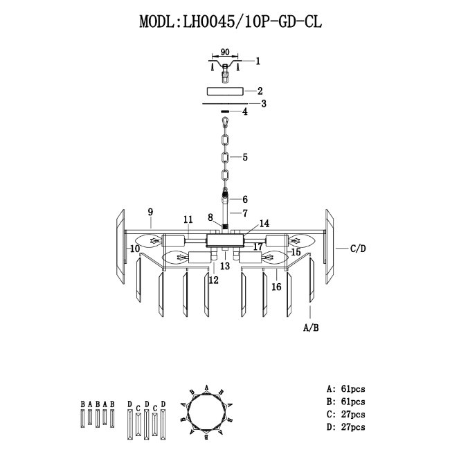 Производитель Lumien Hall Артикул LH0045/10P-GD-CL Страна